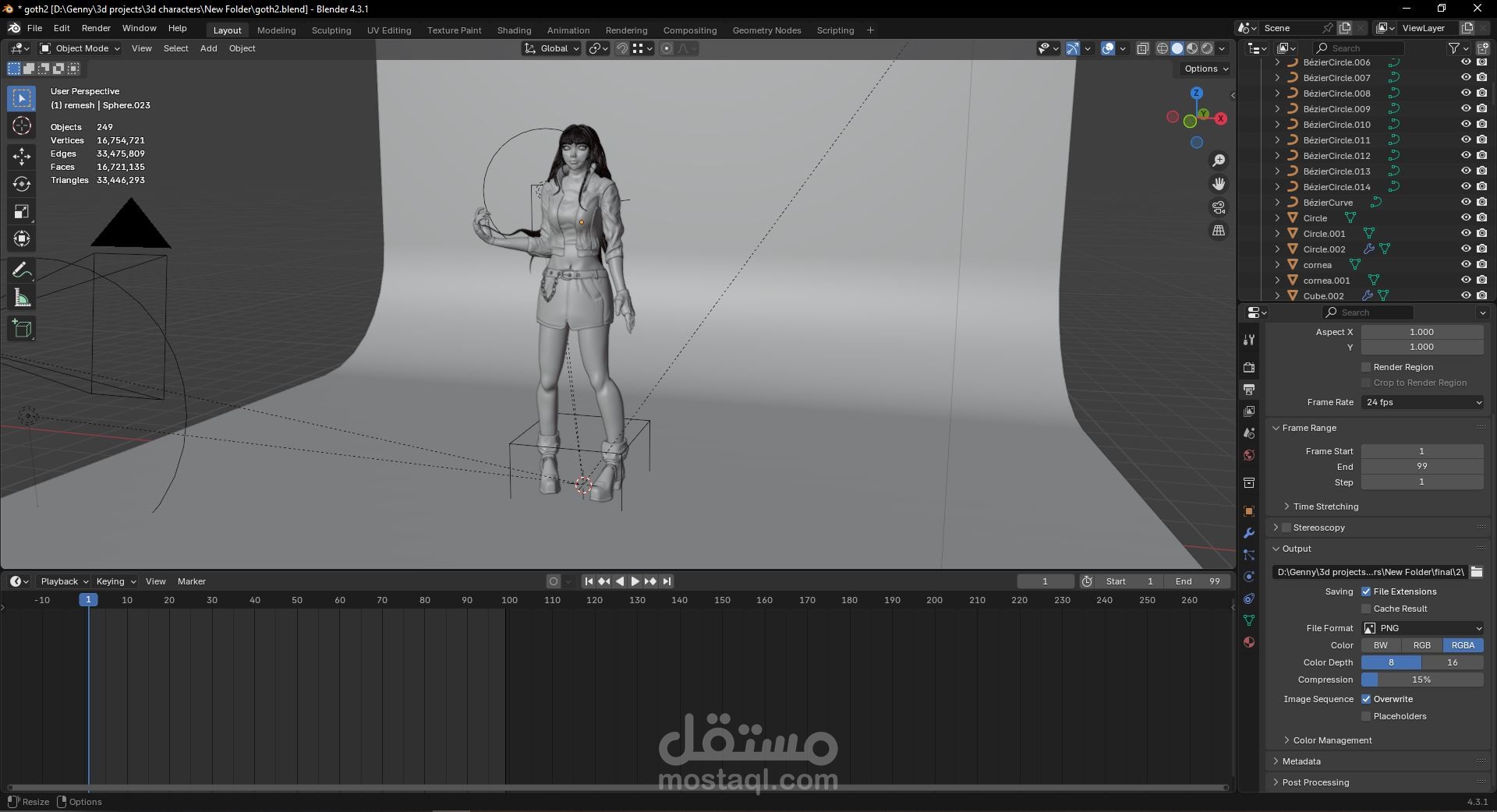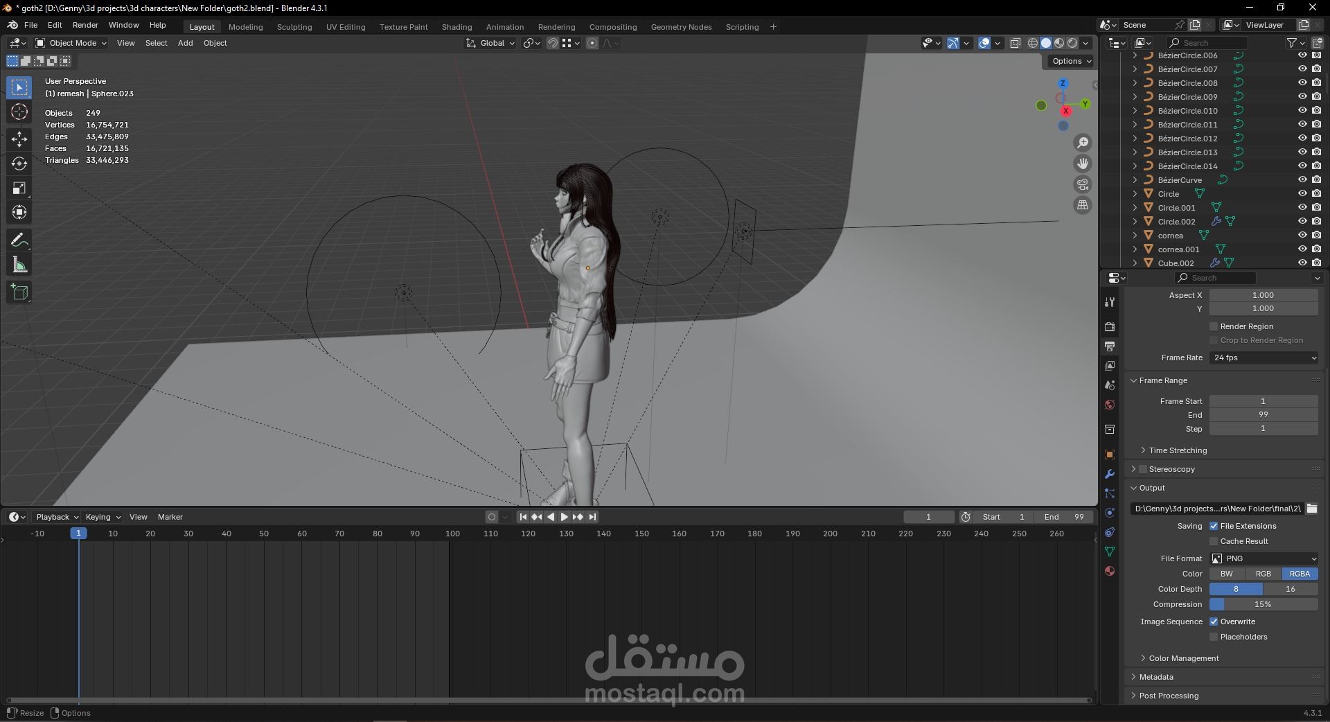 تصميم ثلاثي الابعاد لشخصية تسمى لينا على برنامج بلندر