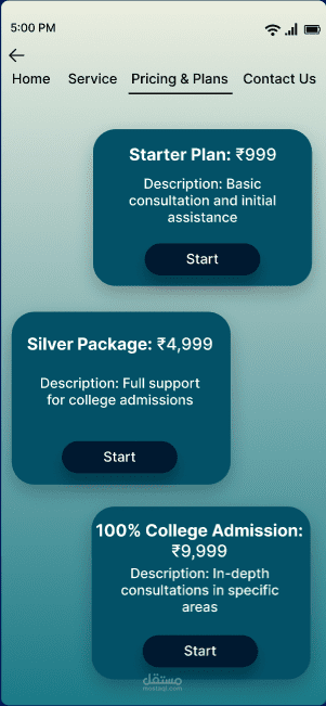 طلب مني أحد العملاء تصميم نموذج بسيط لتطبيق موبايل أكاديمي، يوضح فكرة التطبيق ويشمل الصفحات الأساسية.