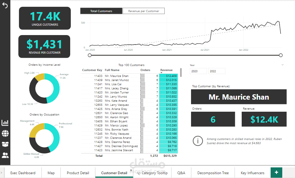 - متوسط الإيراد لكل عميل: 1,431 دولار
