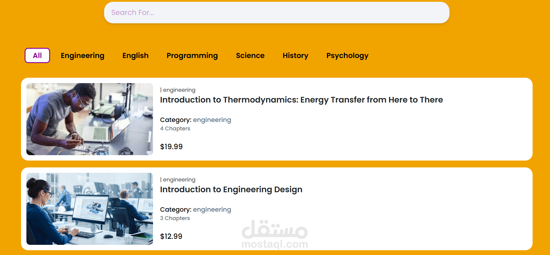 يهدف هذا المشروع إلى توفير تجربة تصفح سلسة وممتعة للمتعلمين، مع واجهة مستخدم جذابة وعملية، مع دعم الفلترة والبحث لتسهيل الوصول إلى الدورات المطلوبة.