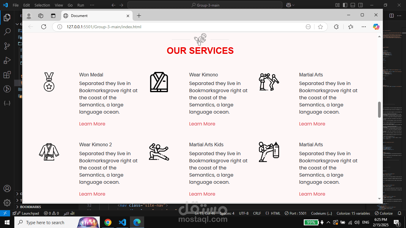 - الموقع يتيح للمهتمين برياضة الكونغ فو التسجيل في التدريبات، التعرف على المدربين، معرفة الخدمات المقدمة، والوصول إلى الأكاديمية عبر الخرائط ووسائل التواصل الاجتماعي.