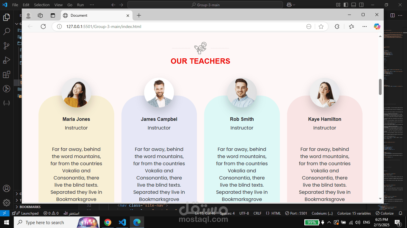 - قائمة بأسماء المدربين وصورهم.