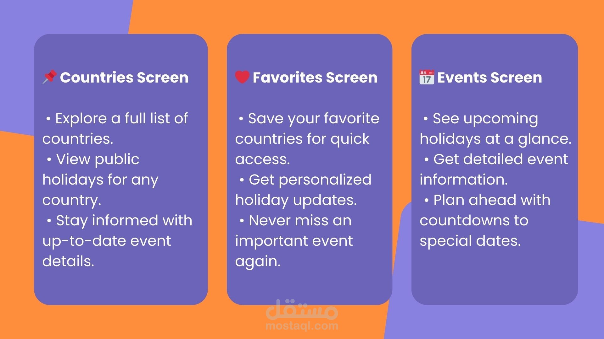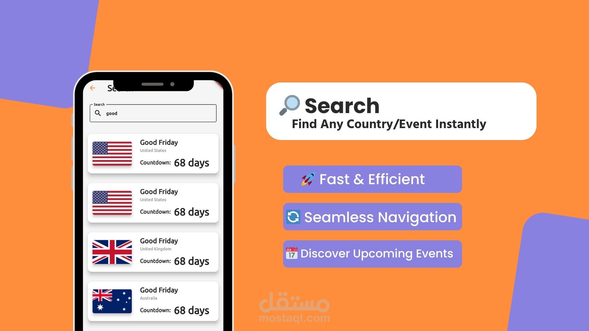 بحث قوي – ابحث فورًا عن العطلات والمناسبات لأي بلد.