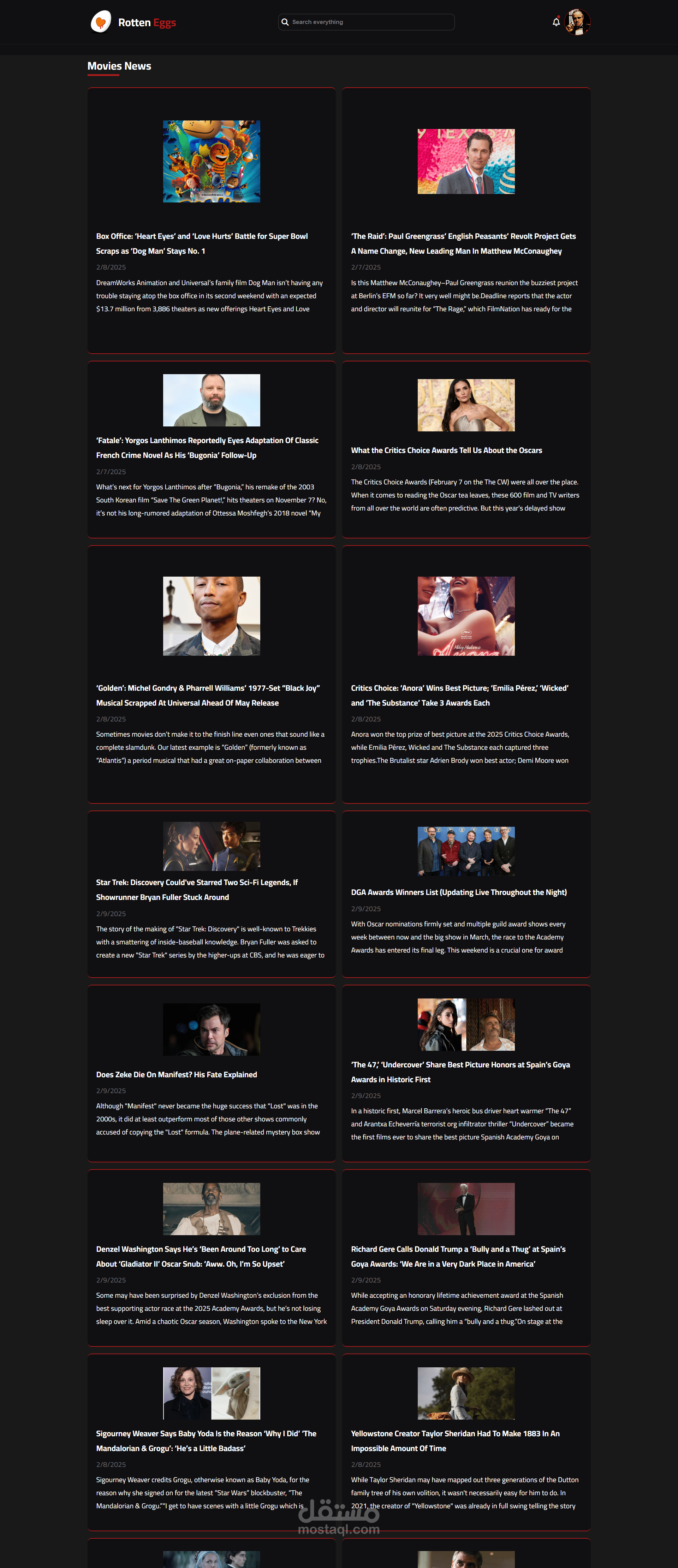 المقبل: يعرض الموقع أهم الأعمال السينمائية والتلفزيونية القادمة.