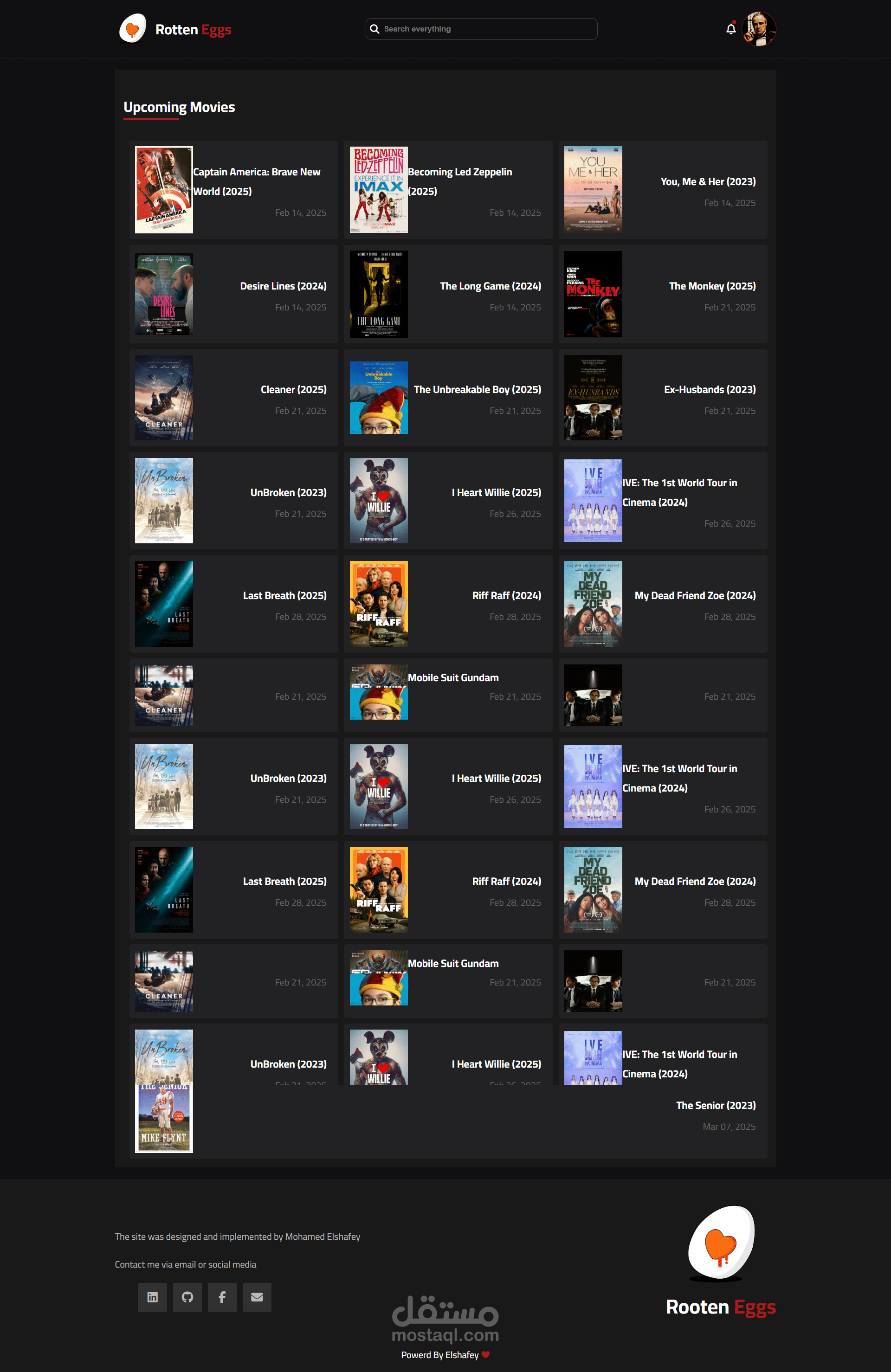 - Rotten Eggs هو موقع شامل مخصص للأفلام والمسلسلات، تم تصميمه ليكون مصدرك الموثوق لكل ما يتعلق بعالم السينما. يتيح الموقع للمستخدمين استكشاف معلومات مفصلة حول الأعمال السينمائية والتلفزيونية، بما في ذلك أعضاء فريق العمل والتقييمات وملخصات القصص.
