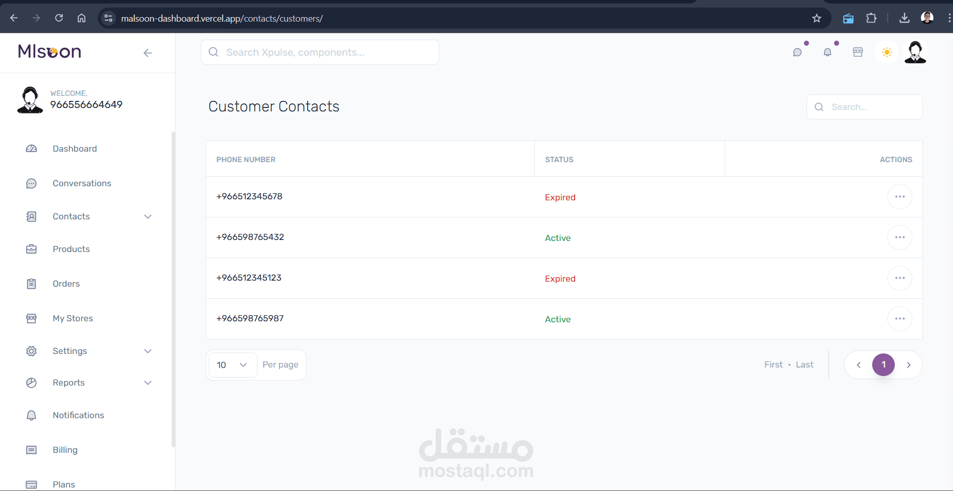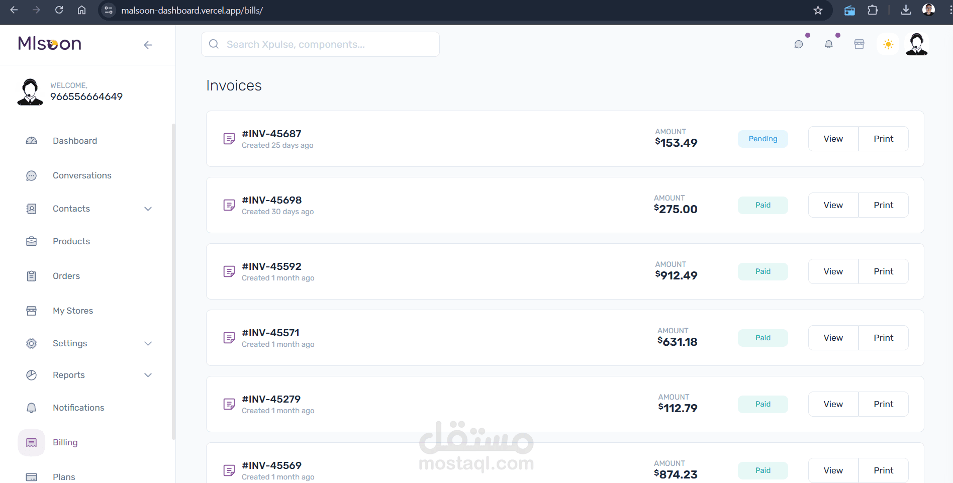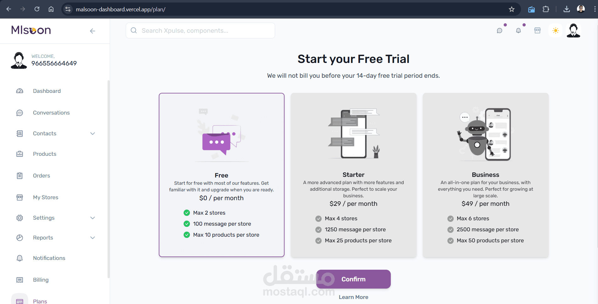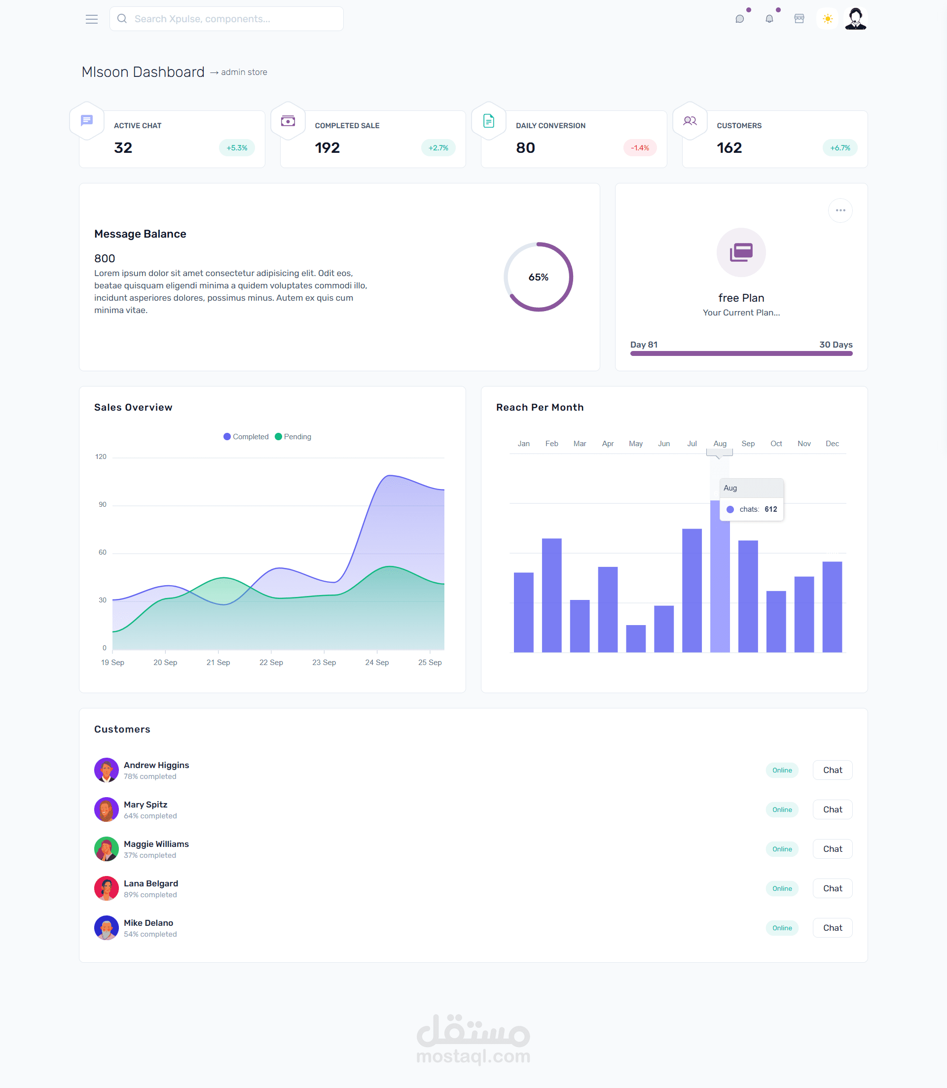 لوحة تحكم منصة ملسون لخدمات البيع عن طريق الذكاء الاصطناعي والتي تشمل العديد من الخصائص:
