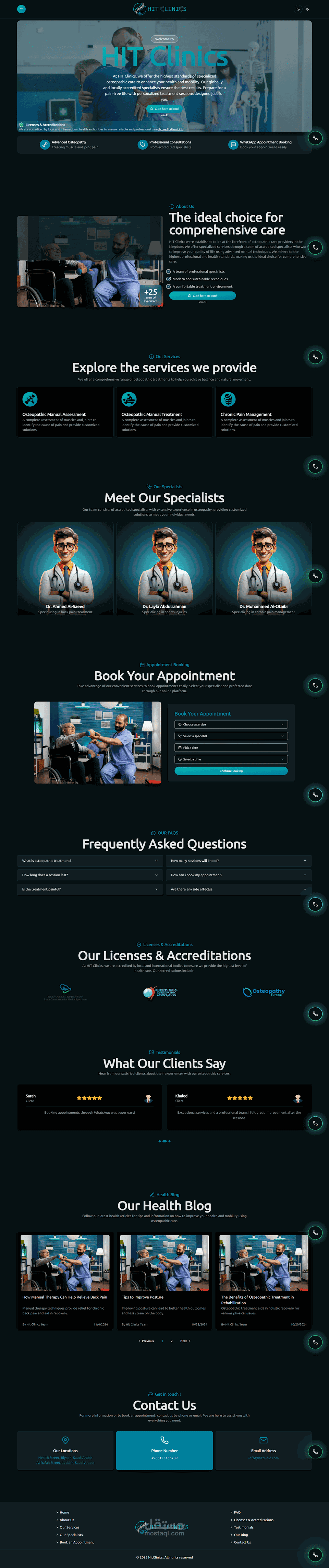 موقع تعريفي لعيادات طبية يدعم التصميم المتجاوب ويدعم الوضع الداكن واللغة العربية والانجليزية