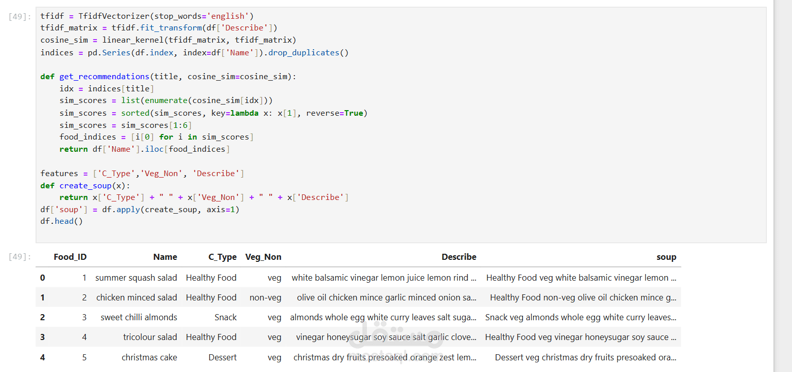 الخطوة 2: استخدام TF-IDF لتوصيات ذكية