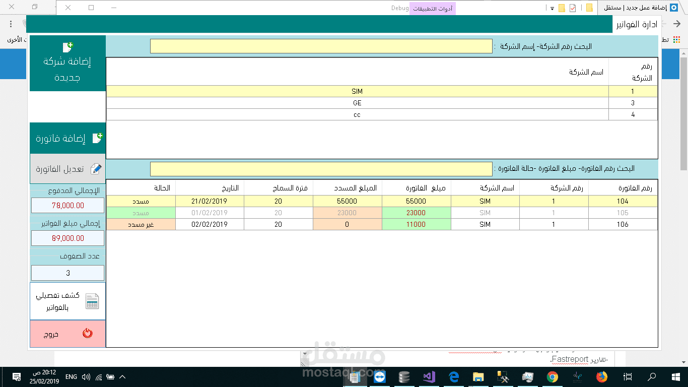 برنامج خاص لإدارة فواتير خاصة بمجموعة من الشركات
