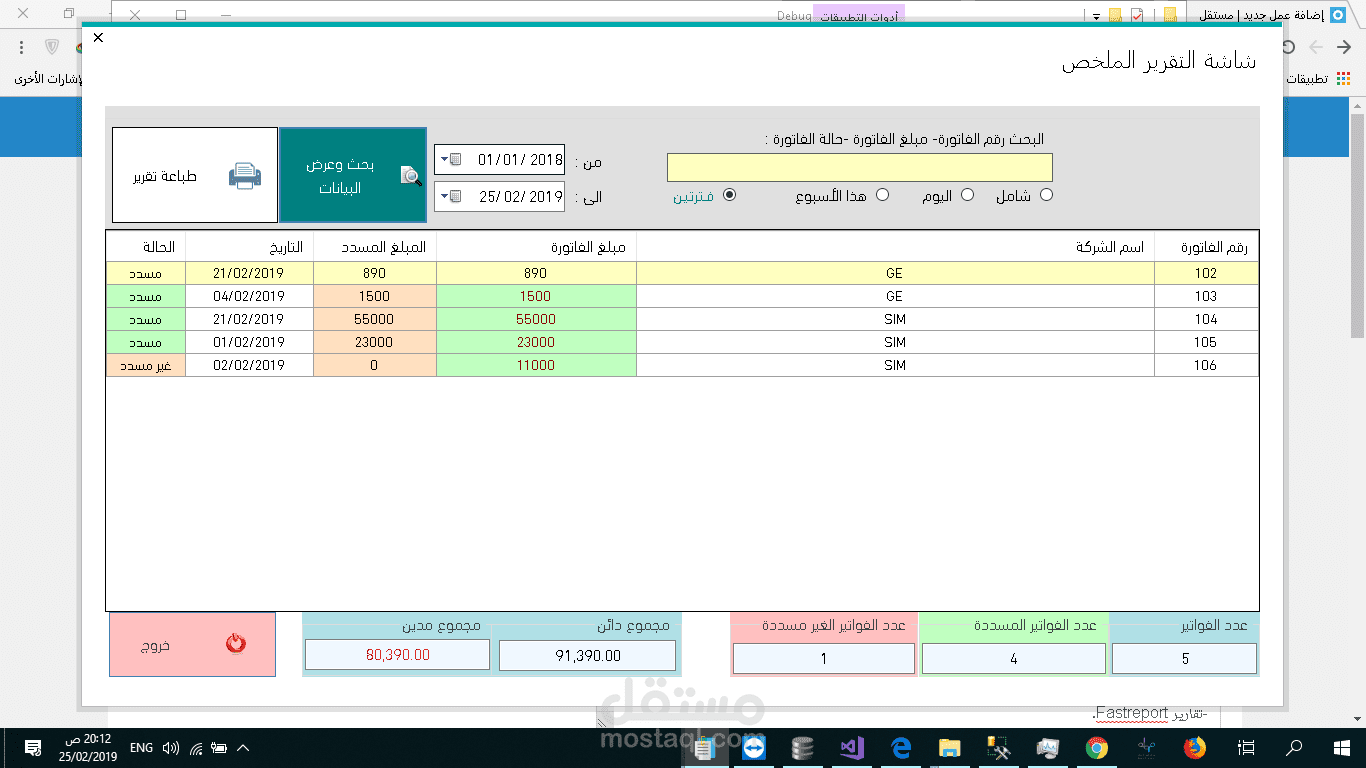 - فلترات خاصة بحسب تواريخ الفواتير او نوعها او حالة السداد