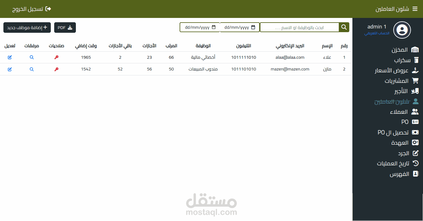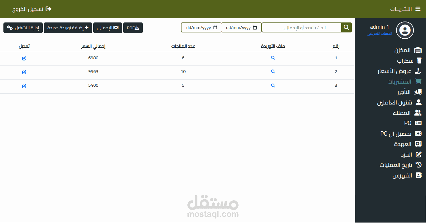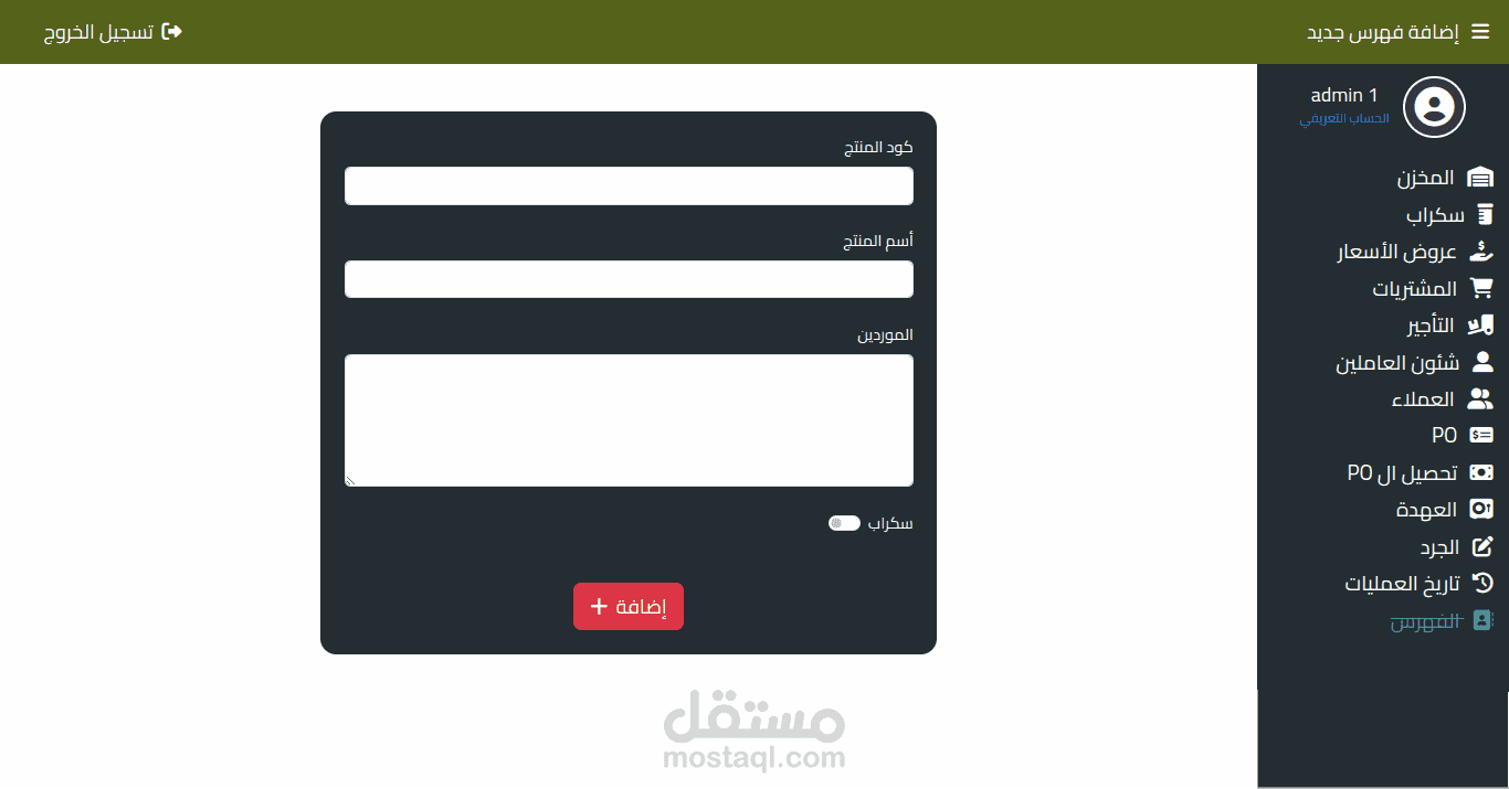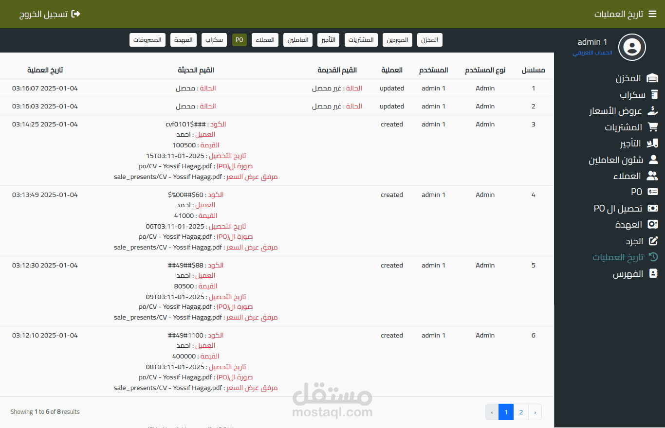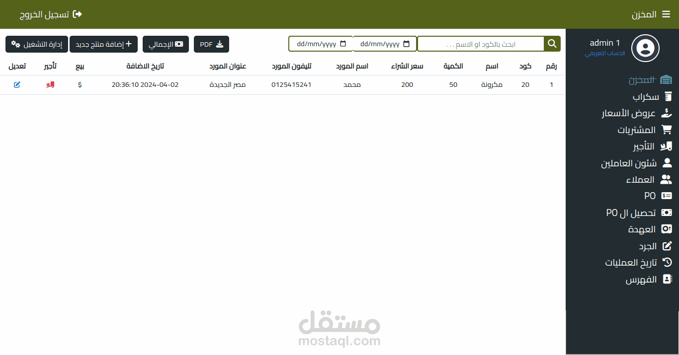 جرد دوري للمخازن العادية والسكراب، مع تسجيل كل ما يتعلق بالمنتجات من بيع، شراء، أو إيجار.