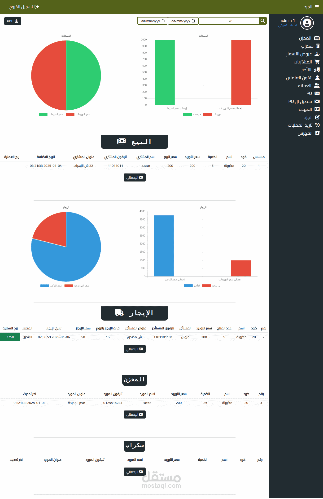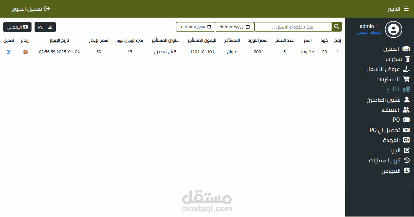 تأجير المنتجات أو المعدات للعملاء، مع متابعة فترات الإيجار وحالة المعدات.