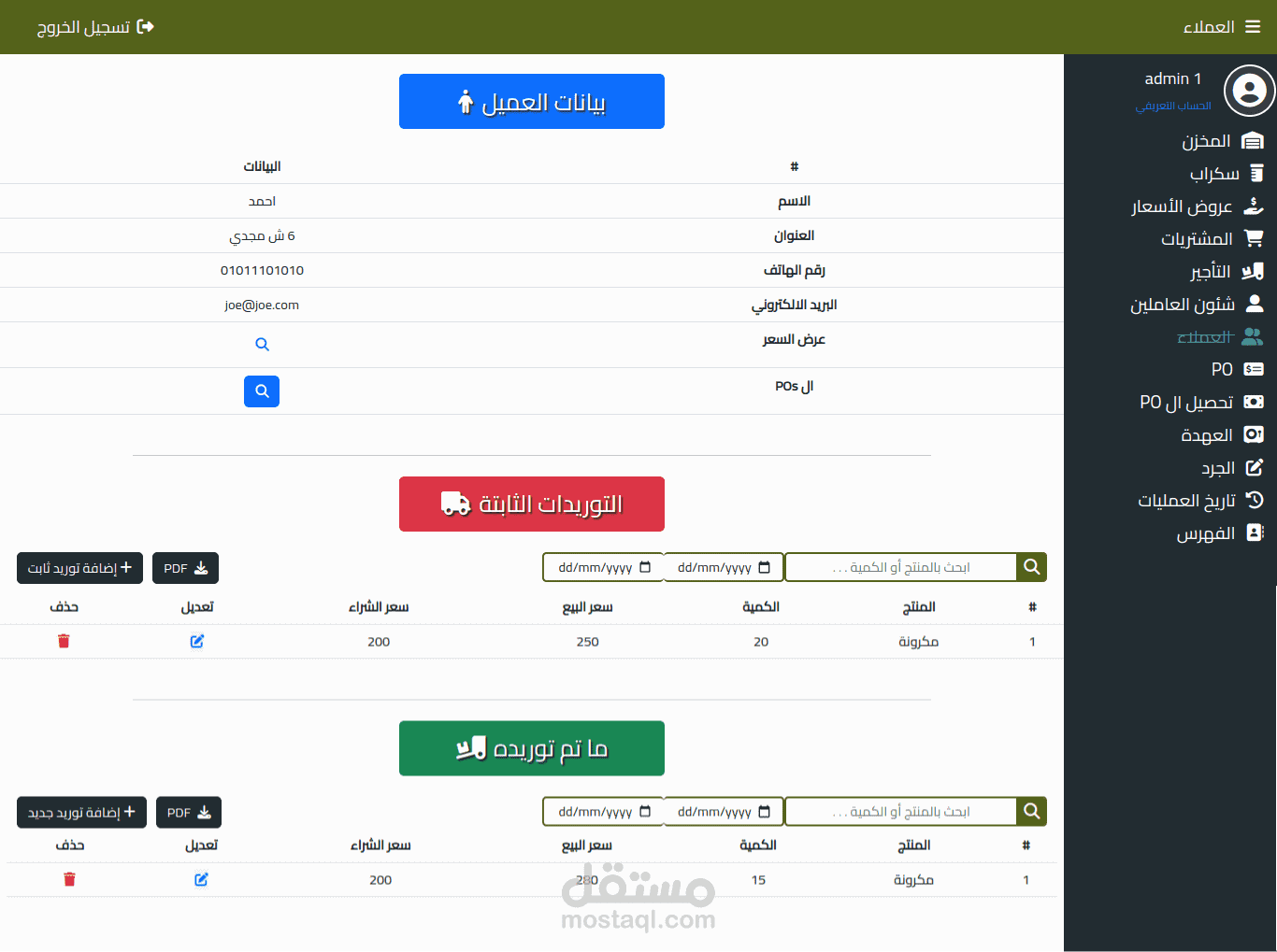 تسجيل بيانات العملاء وتاريخ تعاملاتهم.