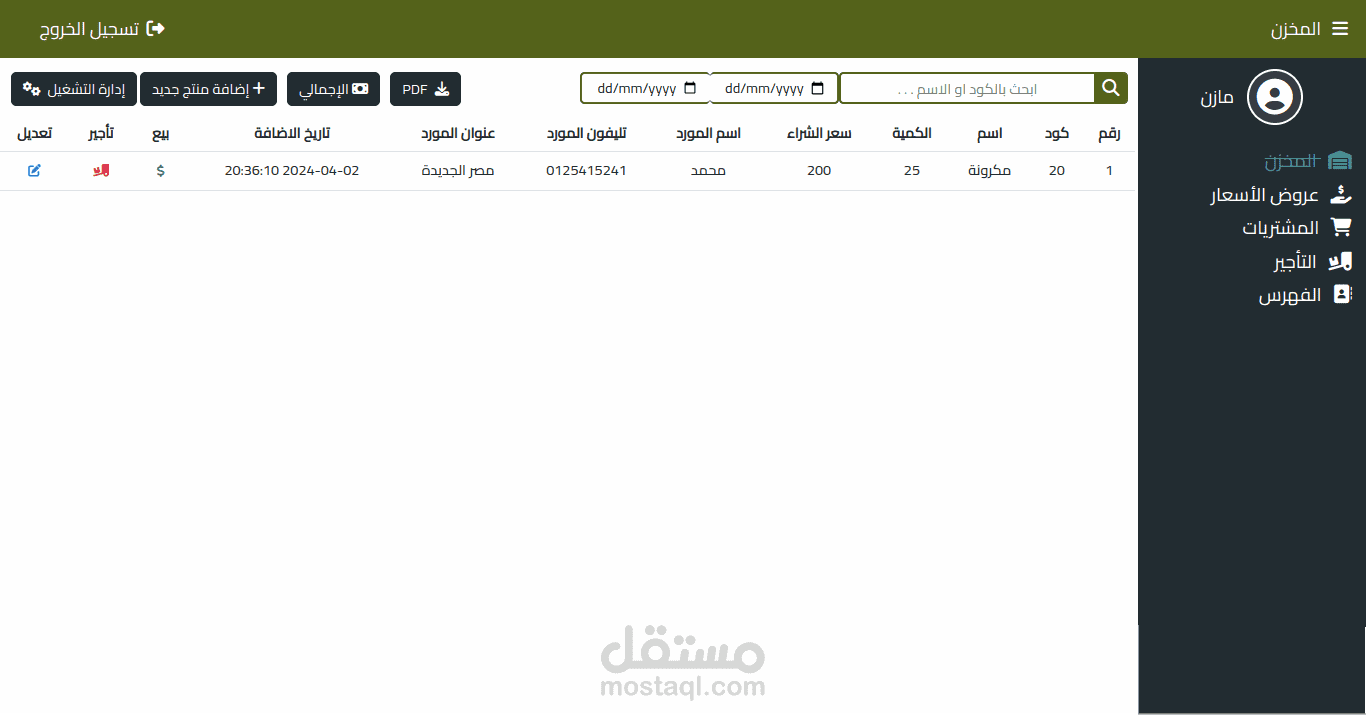 المخزن العادي : لإدارة المنتجات الجاهزة للبيع أو الاستخدام، مع تتبع المخزون بدقة.