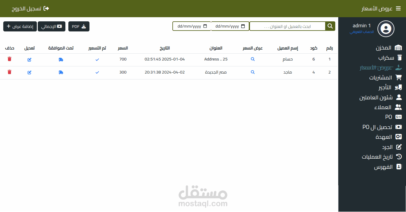 إنشاء ال PO وربطها بالعميل وعرض السعر.