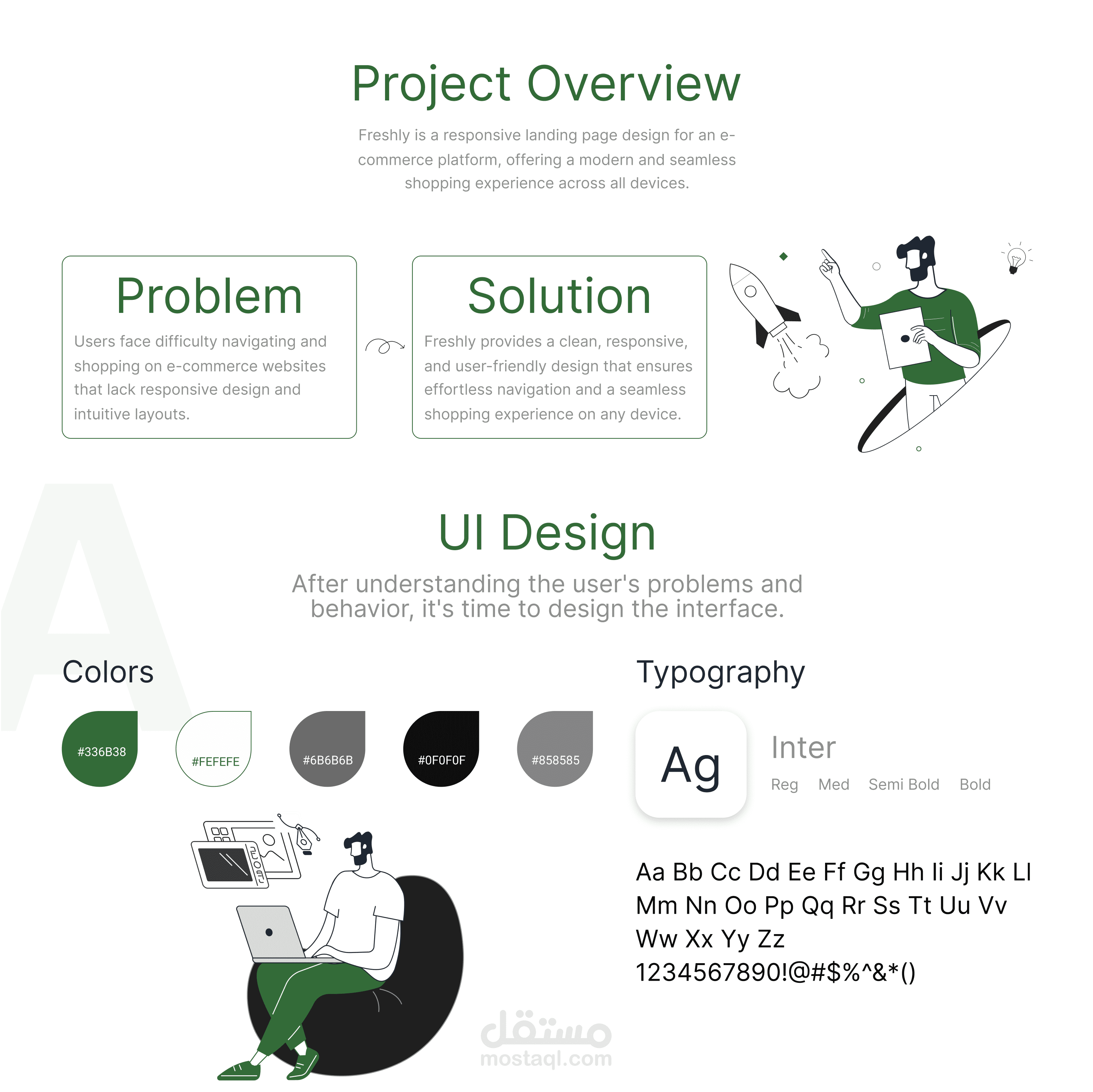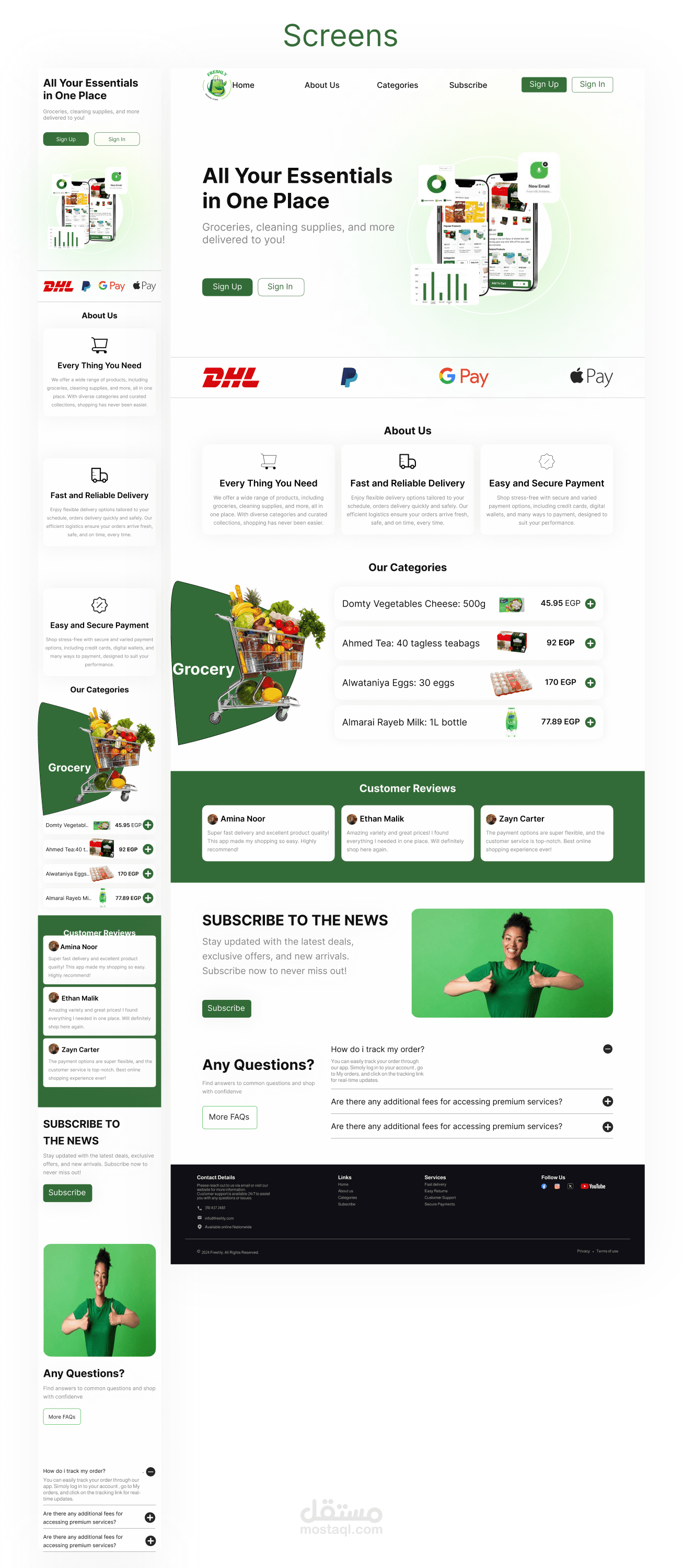 قمت بتصميم صفحة هبوط (Landing Page) احترافية ومتجاوبة بالكامل لمنصة Freshly، وهي متجر إلكتروني متخصص في بيع المنتجات الطازجة. حرصت على الجمع بين الجمالية وسهولة الاستخدام لضمان تجربة سلسة للمستخدمين.