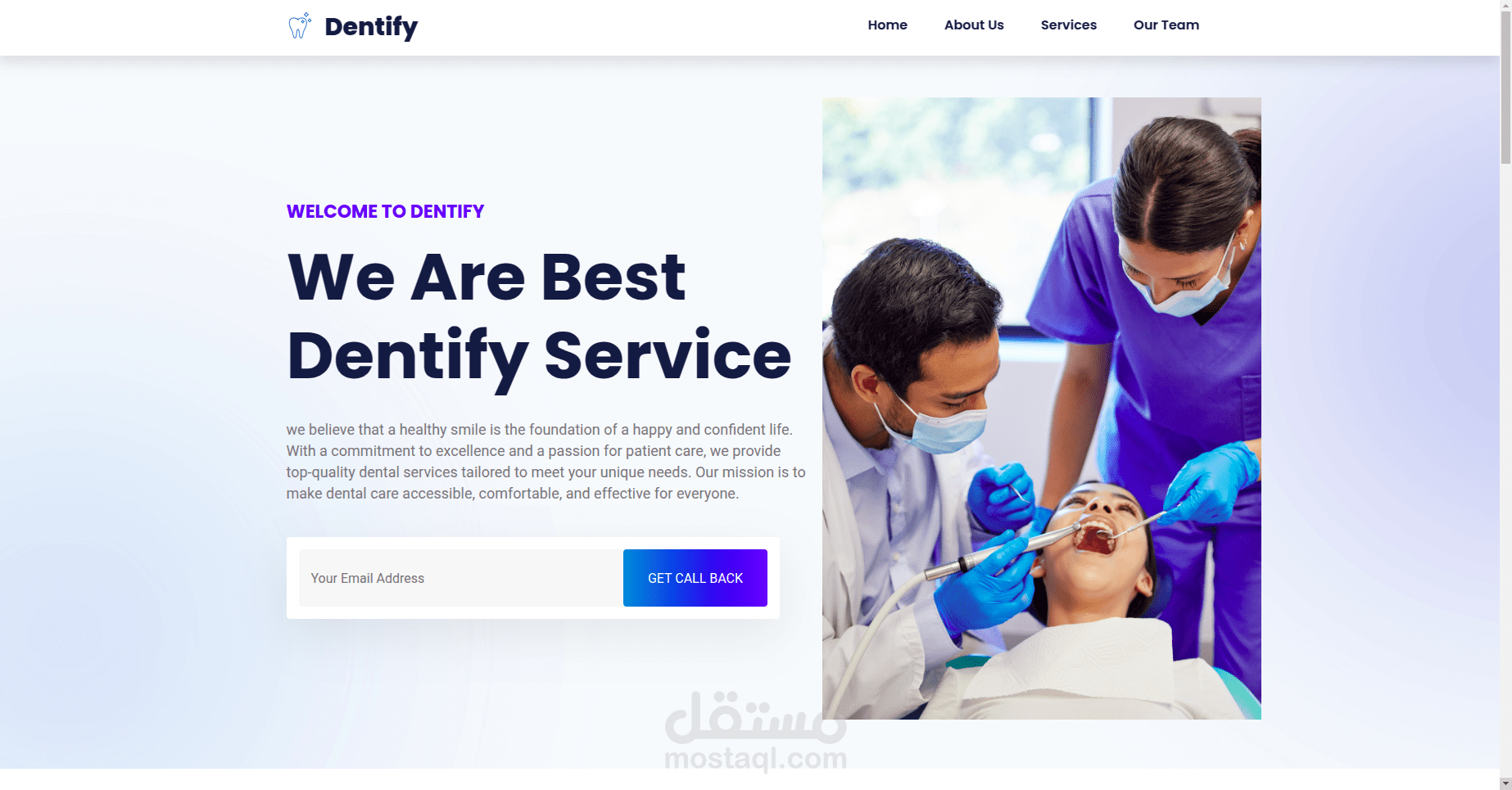 Dentify: هو موقع حديث ومتجاوب لعيادة الأسنان، مصمم لتوفير تجربة سلسة للمرضى. يتميز الموقع بتصميم أنيق، وتنقل سهل، والعديد من الميزات الأساسية لممارسة طب الأسنان.
