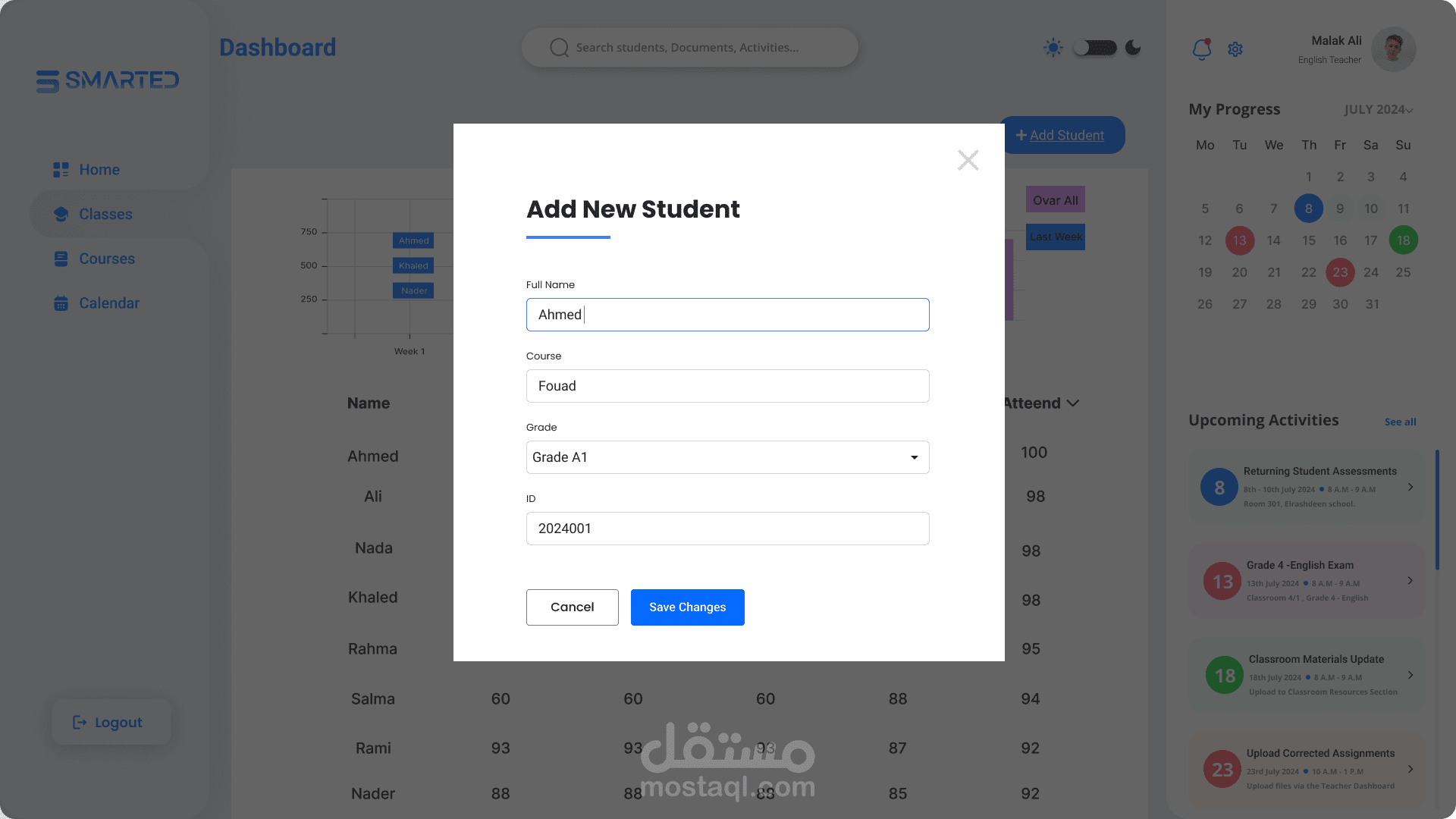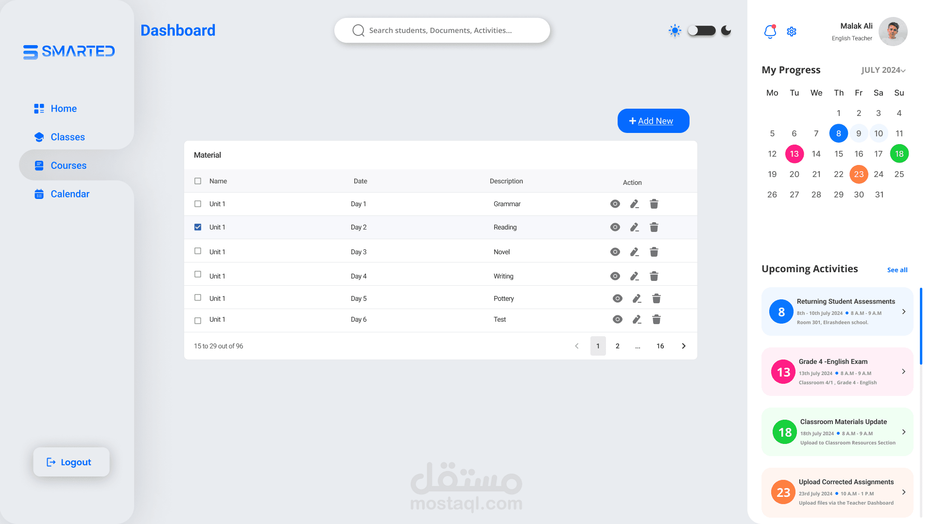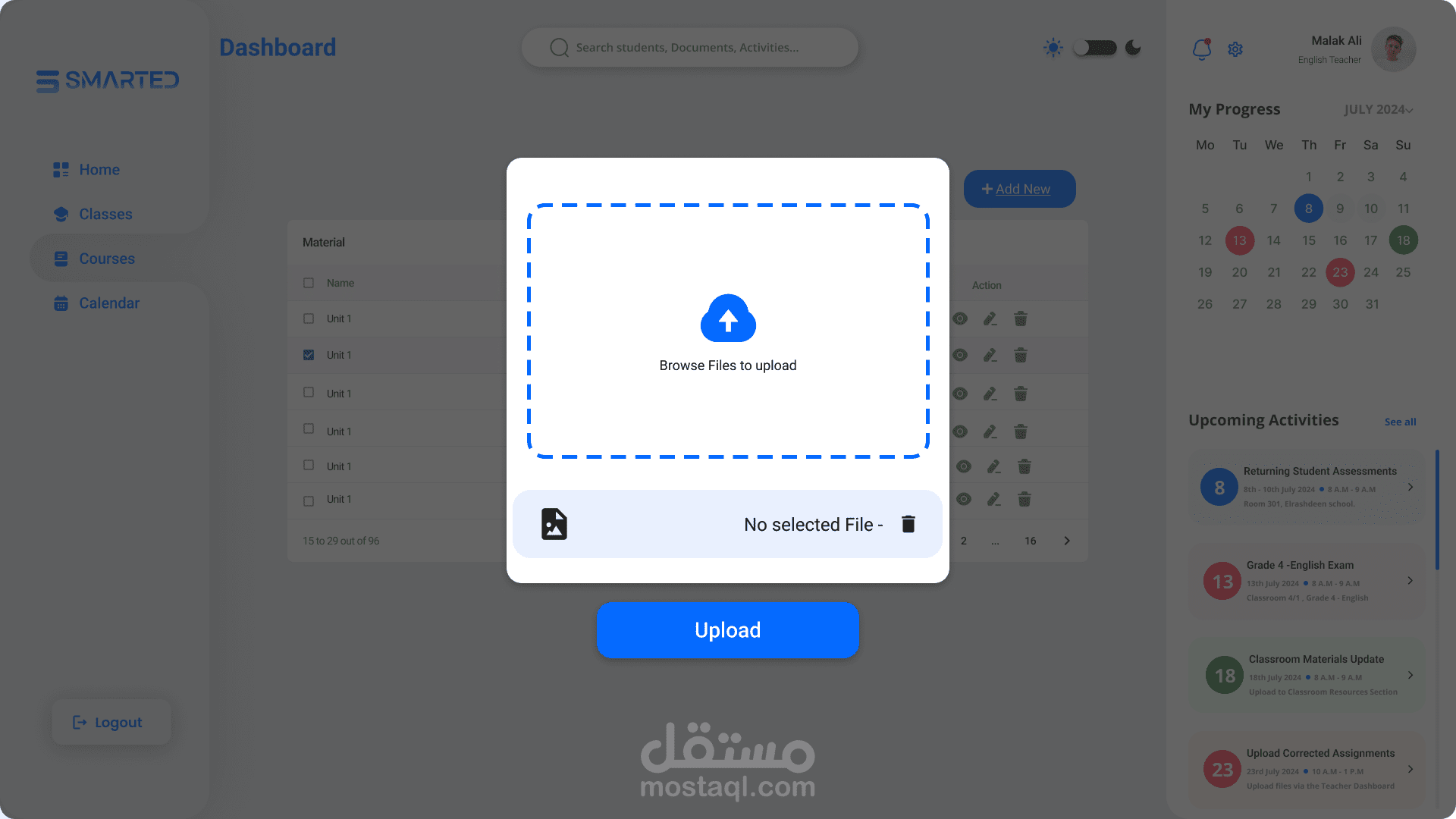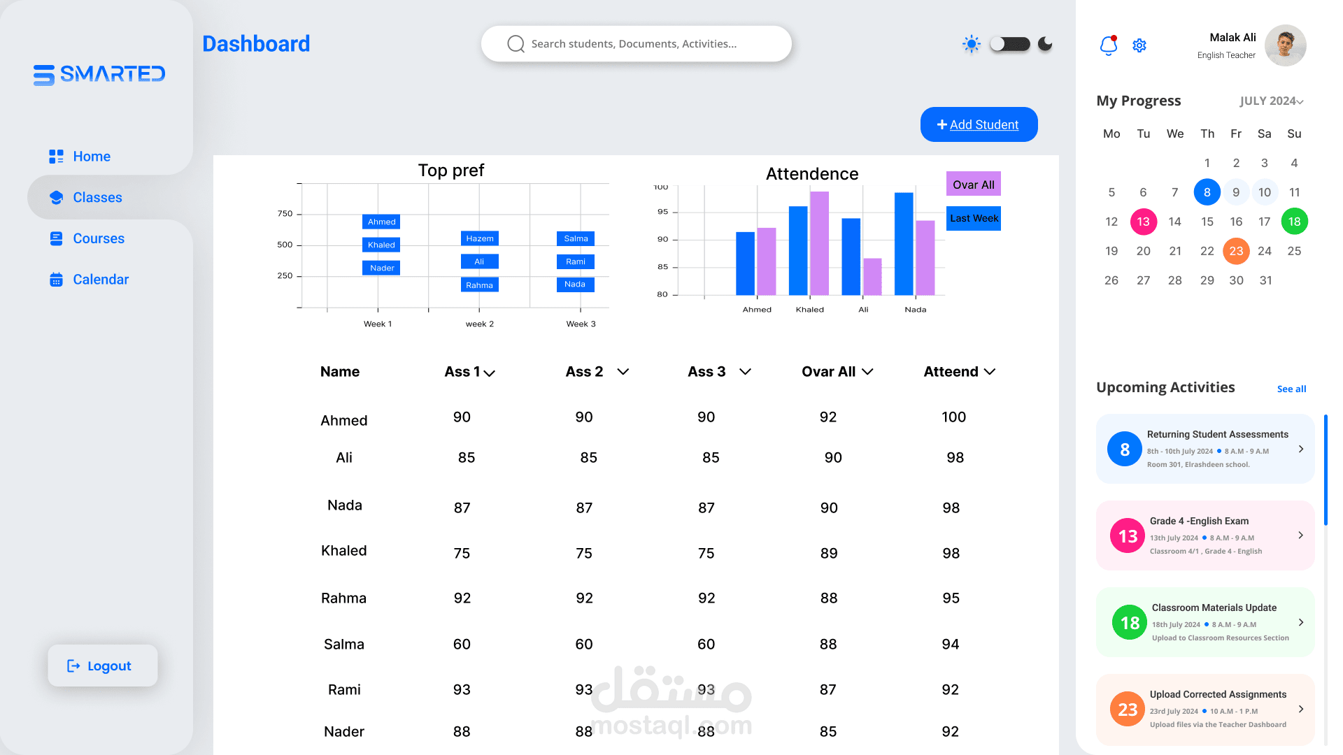 an intuitive and visually appealing dashboard for a school website, tailored to meet the needs of administrators, teachers, and students. The objective was to consolidate essential functionalities—such as class scheduling, attendance tracking, performance analytics, and notifications—into one easy-to-navigate interface.