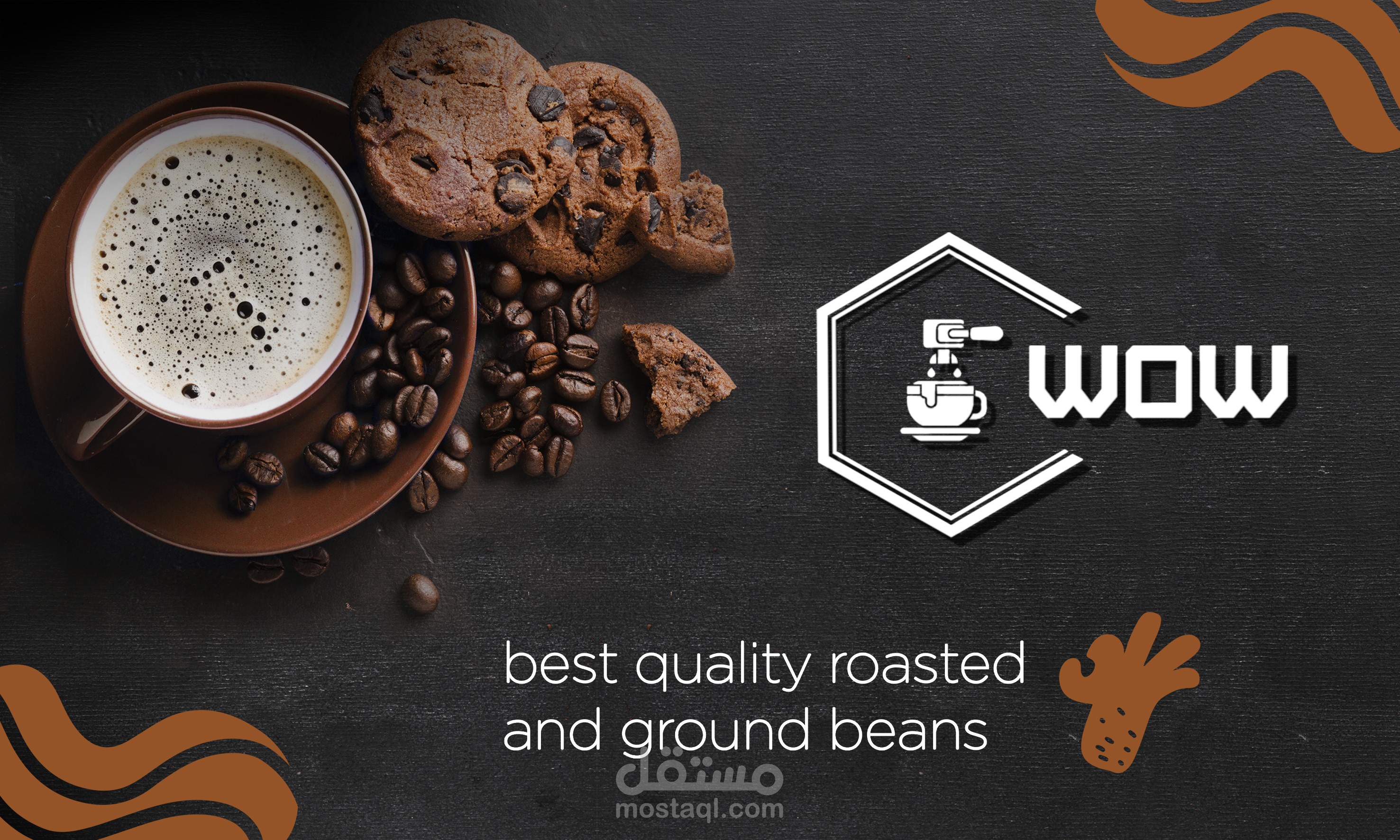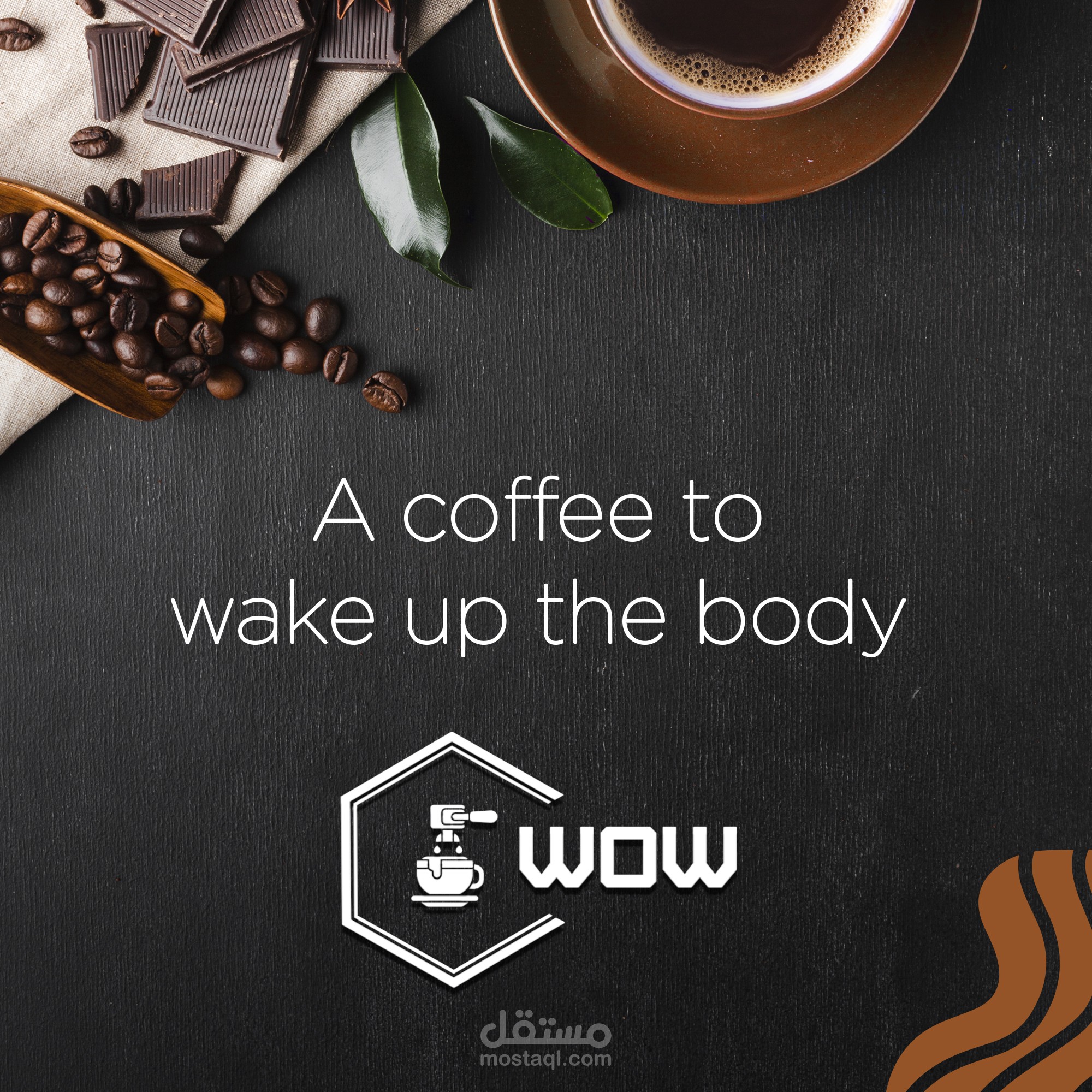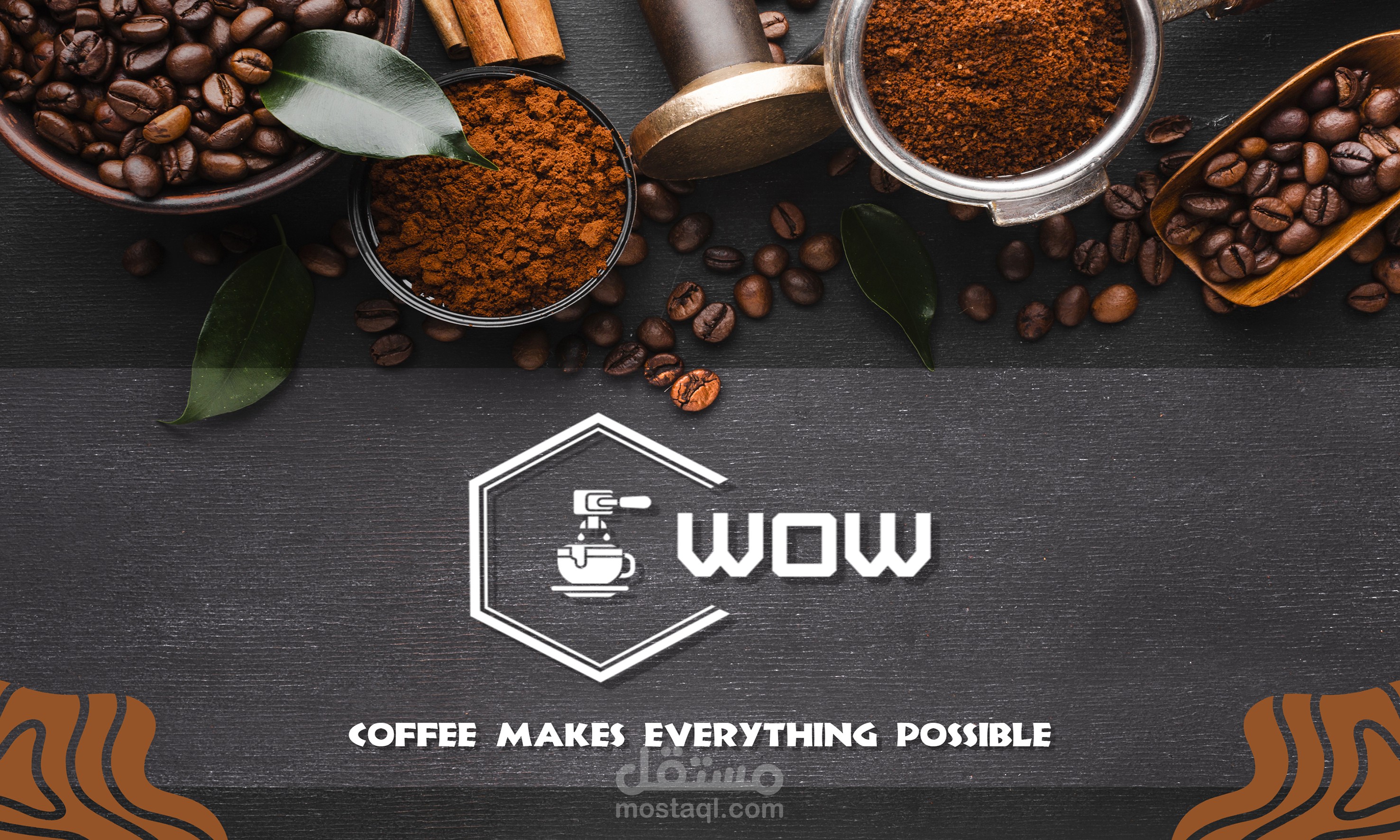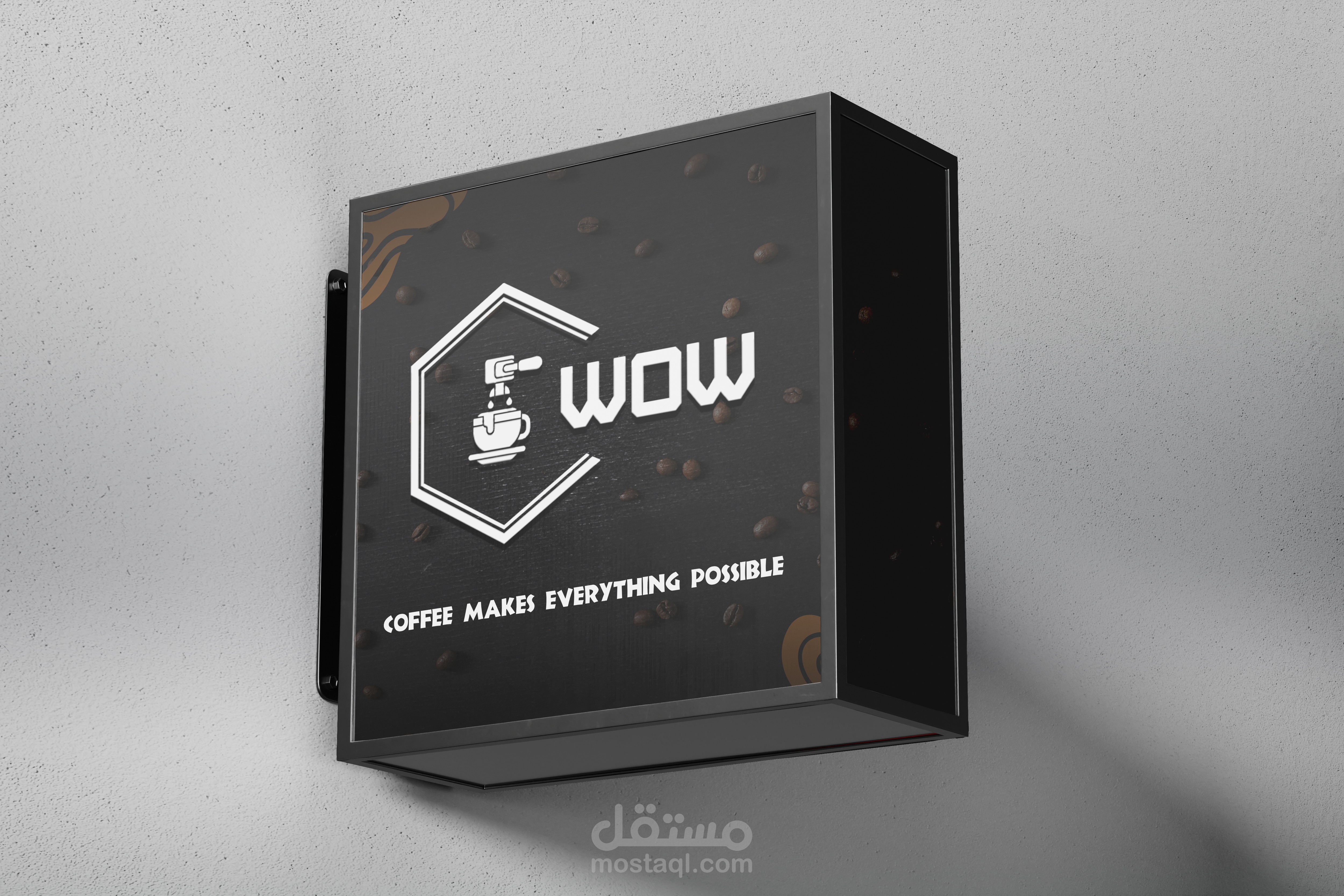 تنفيذ وتصميم مشروع جديد وهوية بصرية جديده بعنوان ( WOW -- COFFEE SHOP ) وتم تنفيذ المشروع بكل احتياجاته من ( Logo -Banner - Business card - Mockups - Posts &Stories for Social Media - 3D Promotional Video )