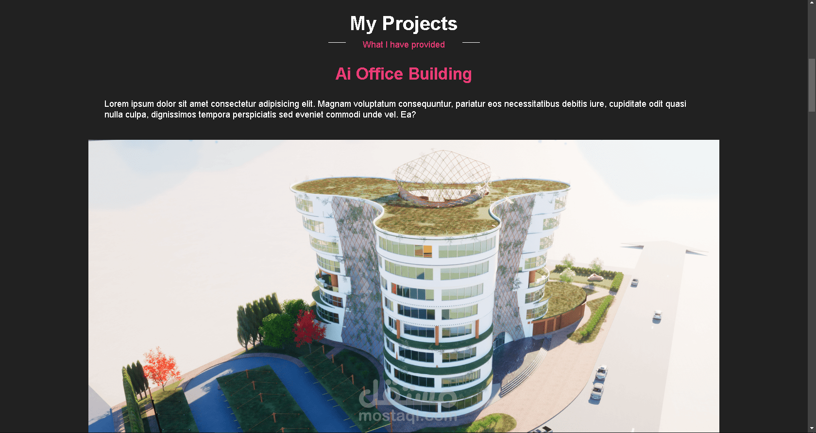 وصف مشروع الموقع الشخصي للمهندس المعماري "X"