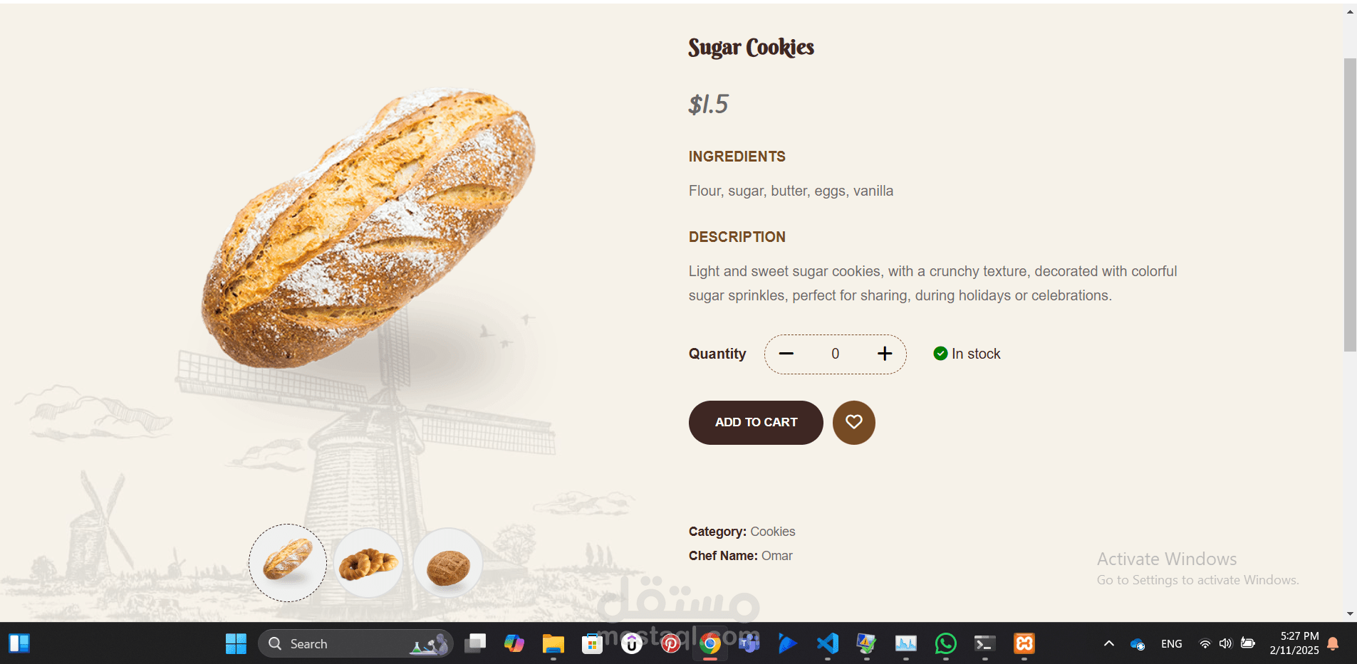 زبدة وزعتر: هو مشروع لمخبز إلكتروني يهدف إلى توفير تجربة سلسة ومريحة لشراء المخبوزات عبر الإنترنت. يتيح الموقع للعملاء تصفح المنتجات، إدارة الطلبات، والدفع بسهولة.