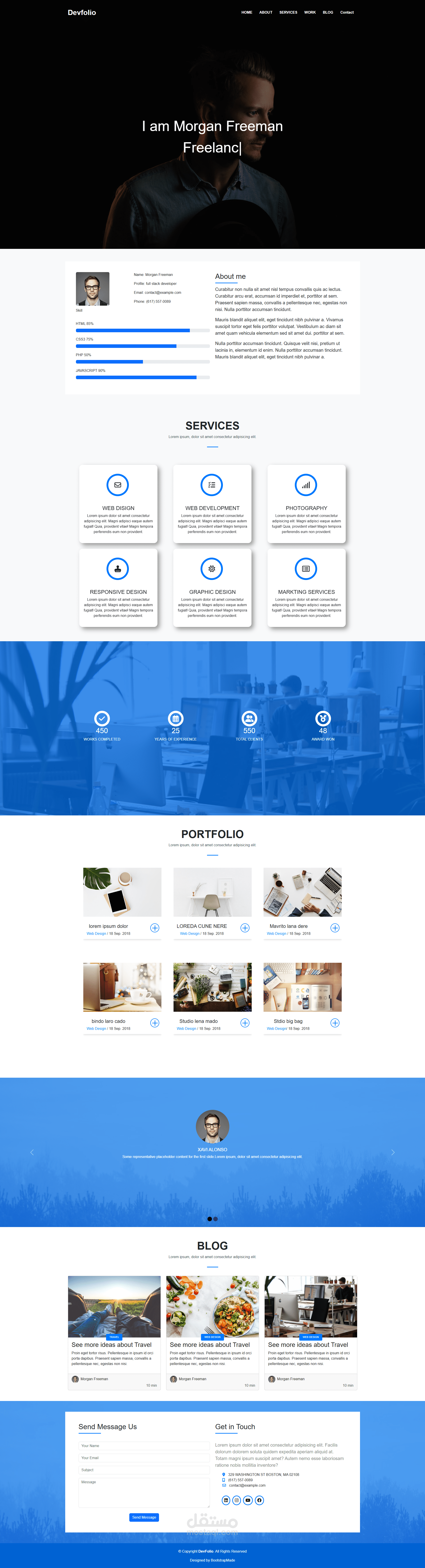 Carousel: لعرض المشاريع أو الصور بشكل تفاعلي.
