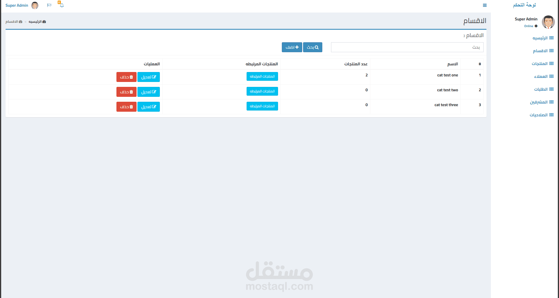 إضافة وتحديث وحذف المنتجات مع تفاصيل مثل السعر، الفئة، المخزون.