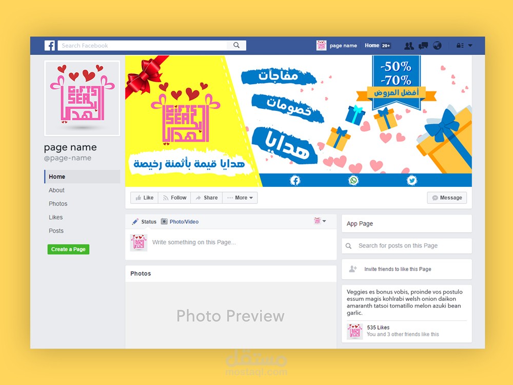 سأصمم لك الشعار الخاص بك و الغلاف الخاص بك على الفيسبوك باحترافية و تعديلات الى حدود رضاك