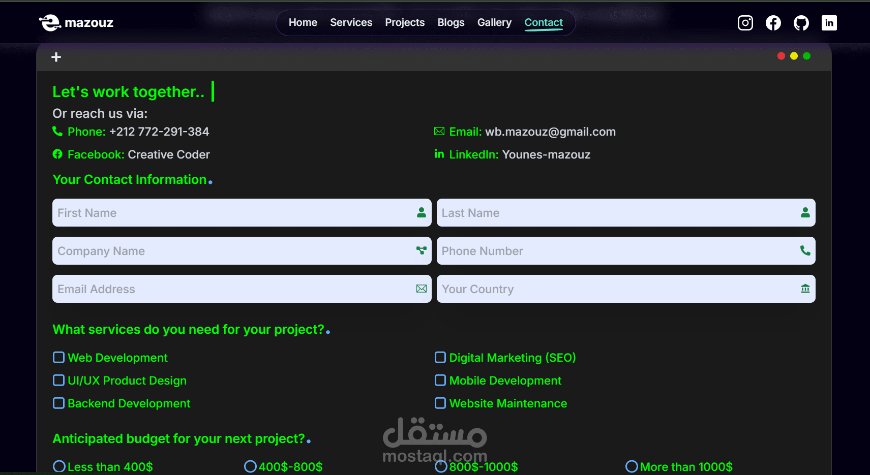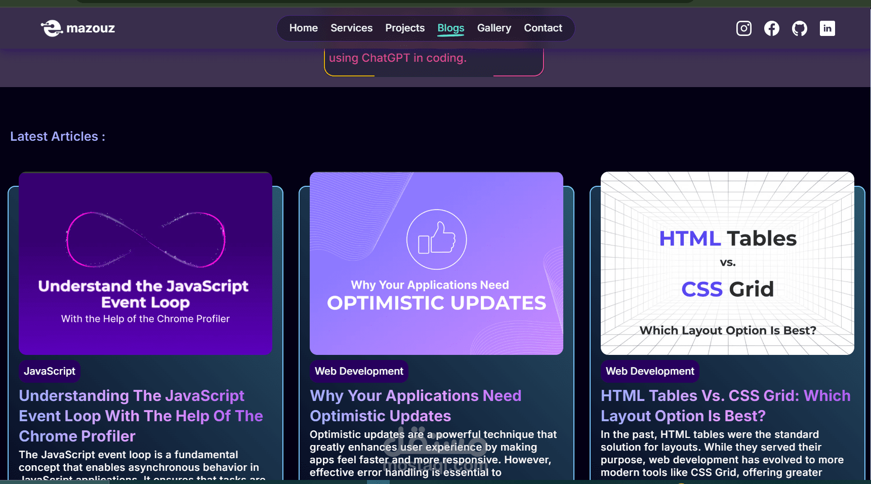 I created a personal portfolio website to showcase my projects and skills. The site features a clean, modern design with responsive layouts, making it accessible on all devices. I implemented sections for my work and blogs to offer web tips, as well as contact forms to facilitate client inquiries. Additionally, I developed an admin panel with a backend to manage and control the data efficiently. I used React, Next.js, Tailwind CSS, and JavaScript to enhance the user experience, which resulted in increased engagement and inquiries about my services.