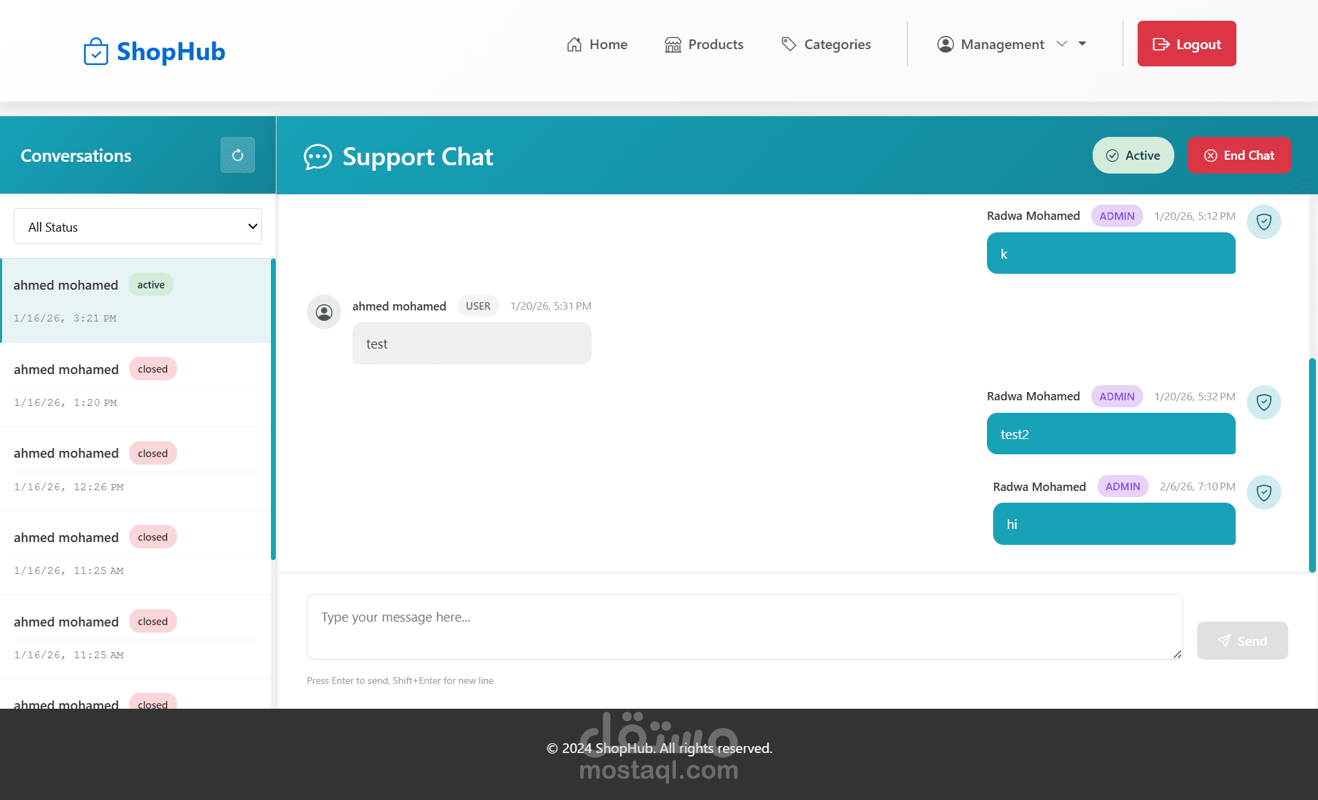 - إدارة المحادثات والدعم