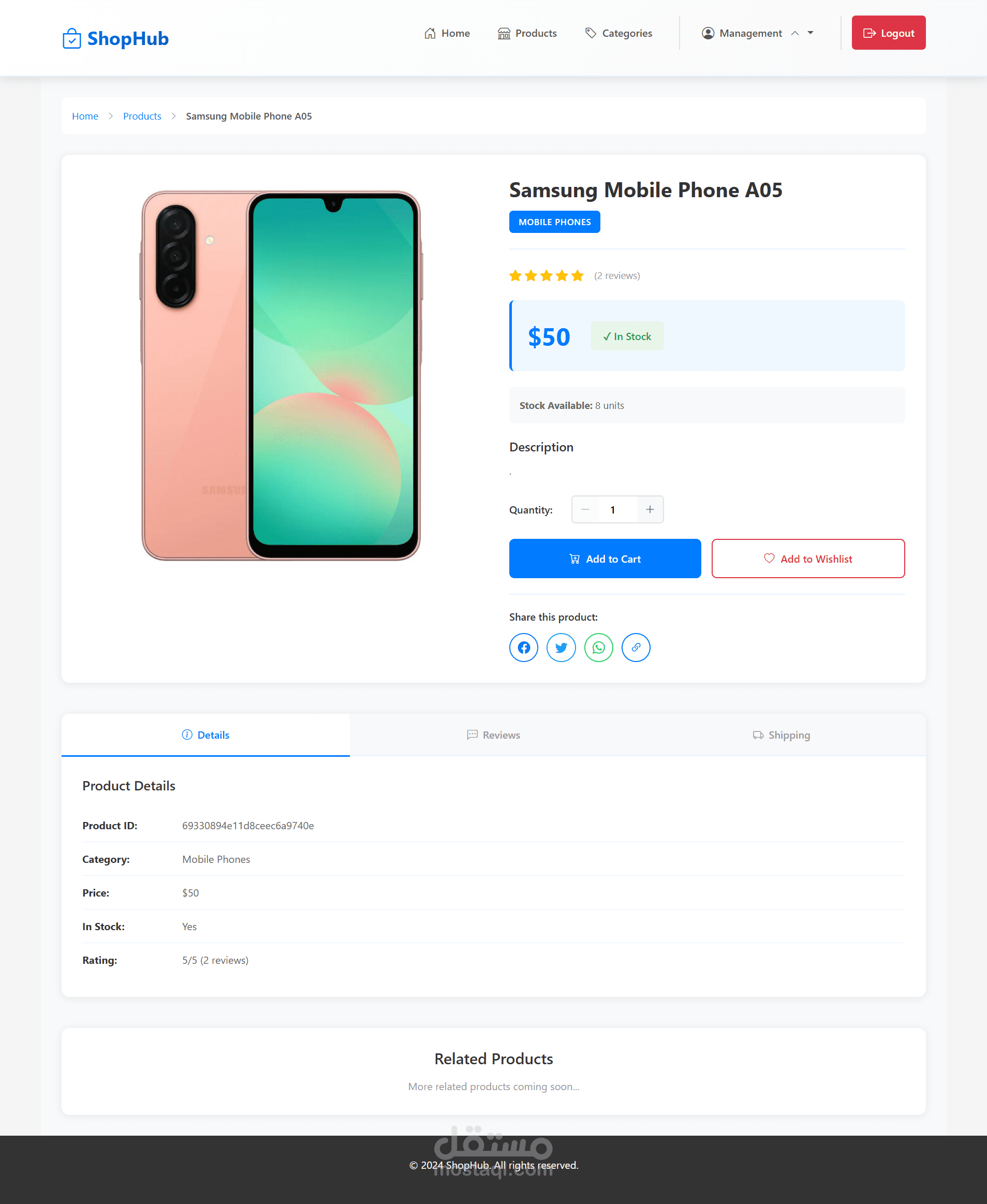 - عرض تفاصيل المنتج والصور