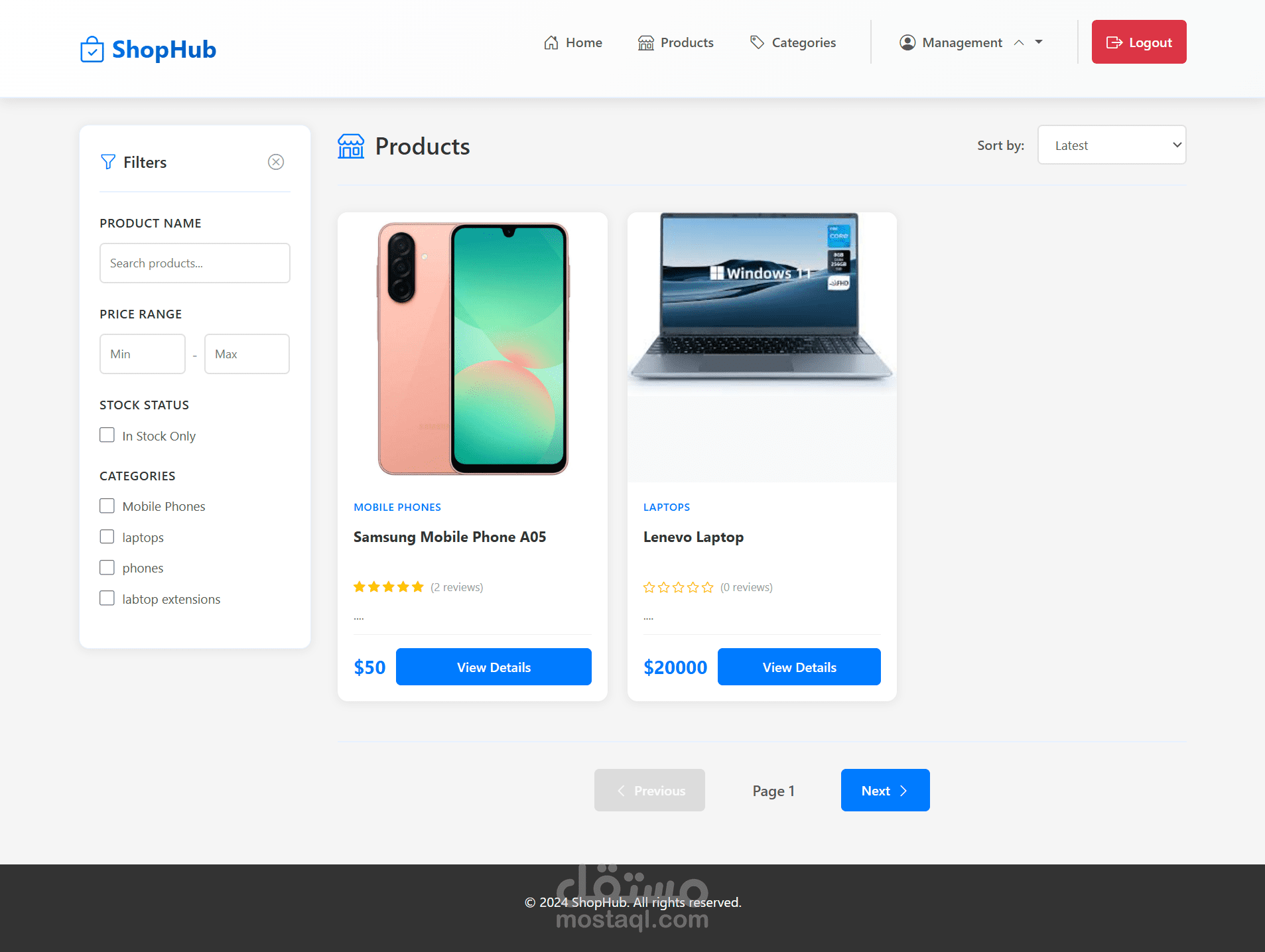 - عرض المنتجات مع Pagination و Filtering