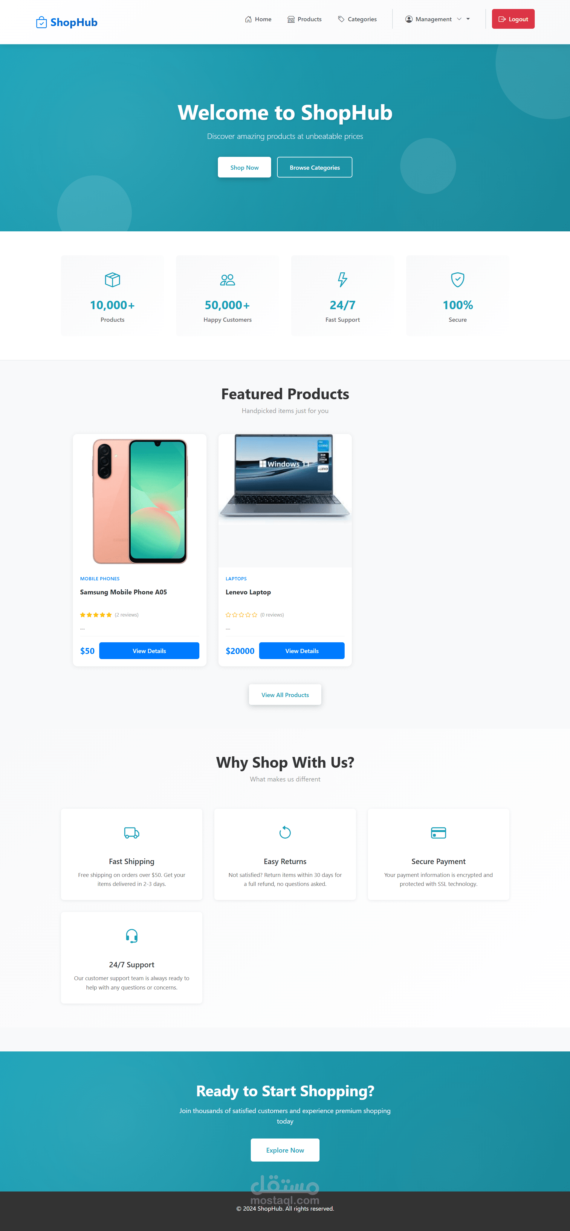 منصة تجارة إلكترونية متكاملة (Full-Stack E-Commerce Application) تم تطويرها باستخدام