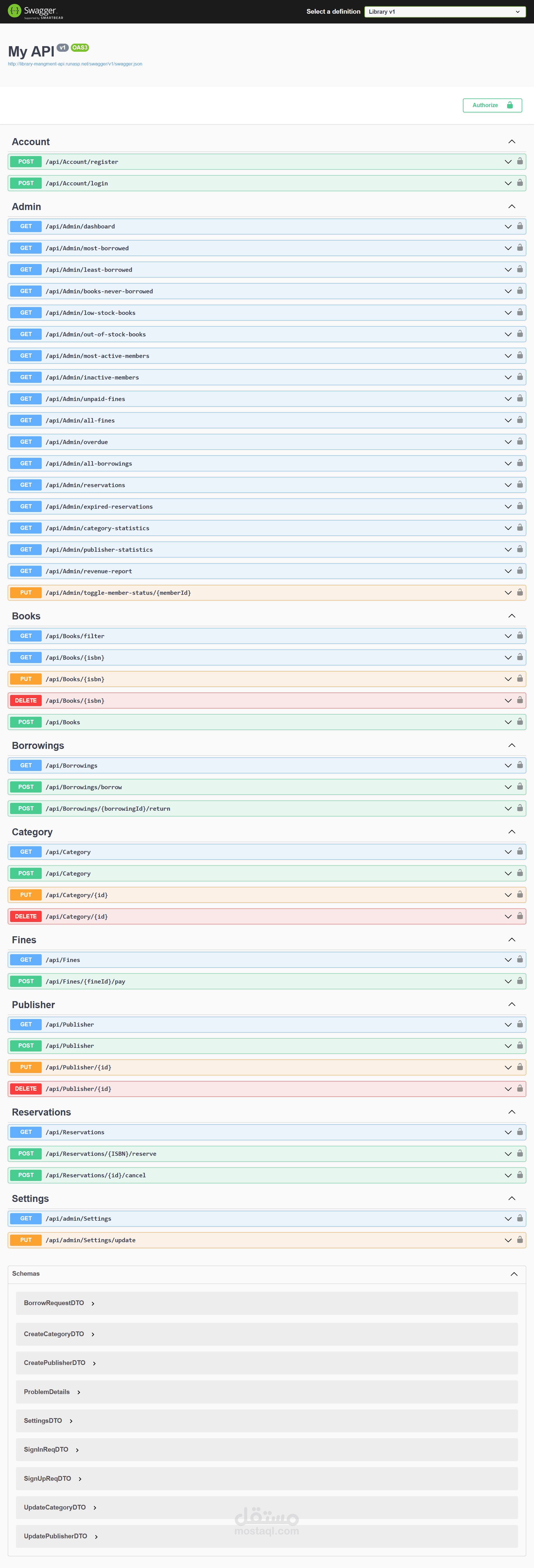 نظام إدارة مكتبة (Library Management System API) مبني بأسلوب RESTful، يوفّر واجهات برمجية متكاملة لإدارة المستخدمين، الكتب، الإعارات، الحجوزات، الغرامات، والإحصائيات.