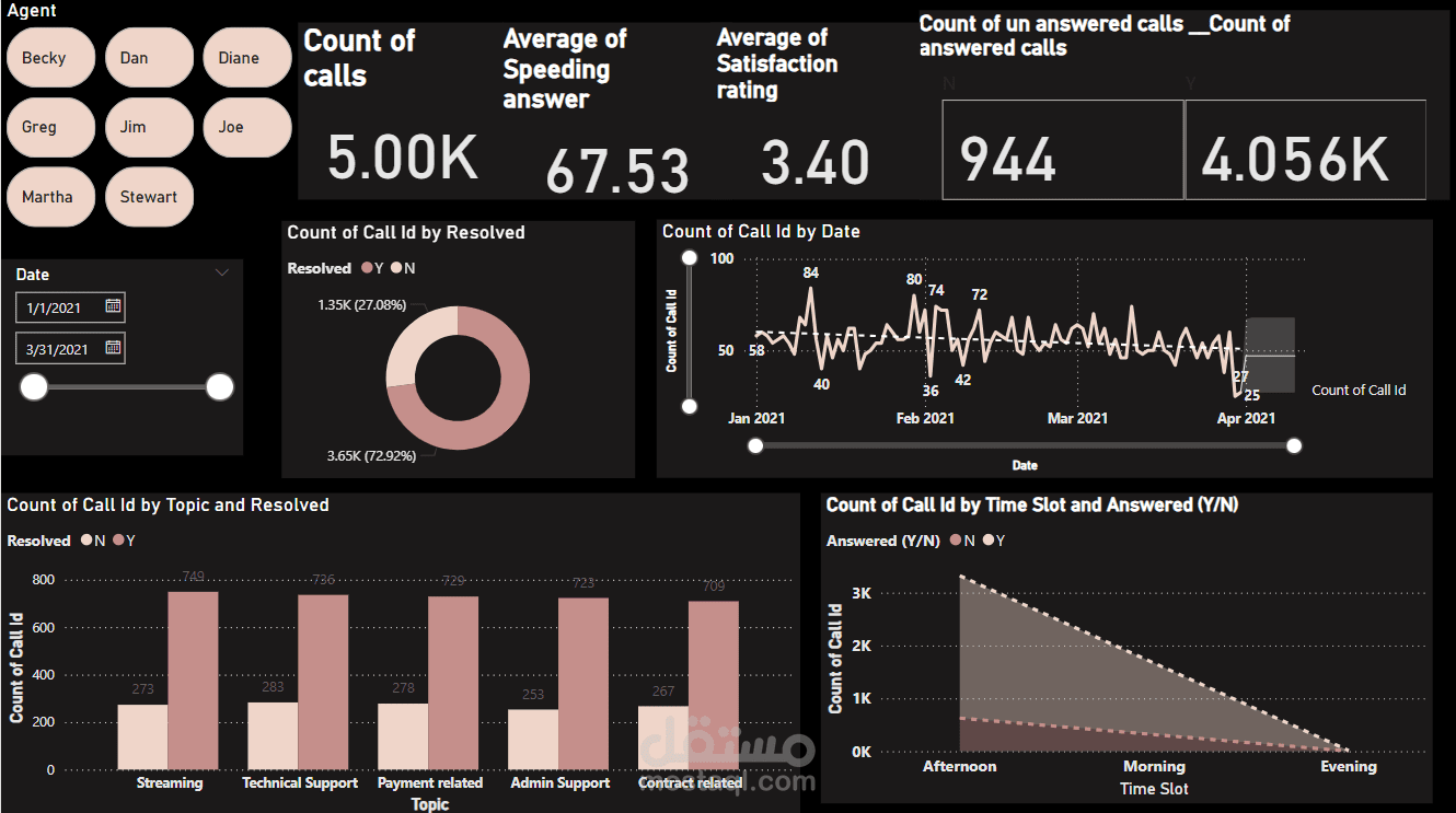 عدد المكالمات المُجاب عليها مقابل المكالمات التي لم يُجب عليها