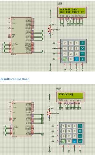 Definition of the problem: interface between keypad and lcd get average of N numbers given by keybad and display on lcd Project hardware requirement • One 89c52 microcontroller • Bread board or PCB (Making Circuit) • 16×2 lcd (Displaying Text) • 4×4 keypad (Taking Input) • Potentiometer (For setting lcd contrast)
