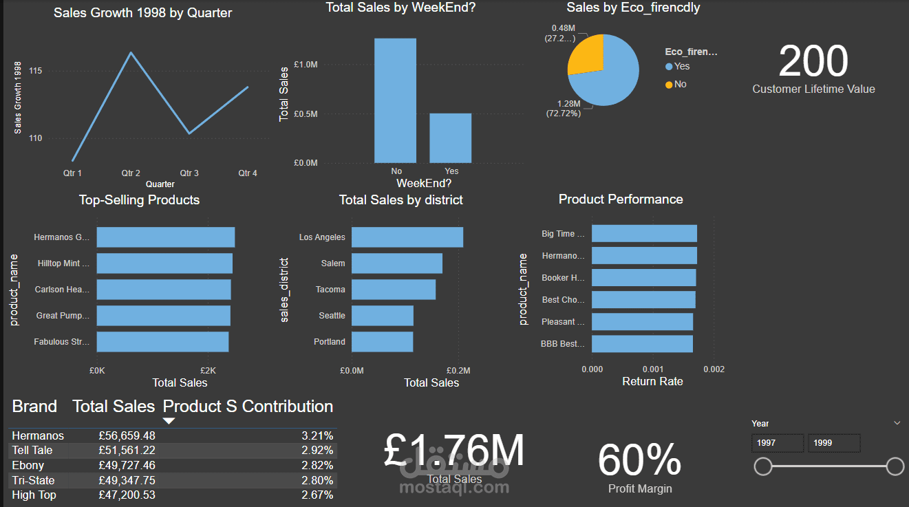 Added a year filter (1997-1999) to analyze sales trends over time.