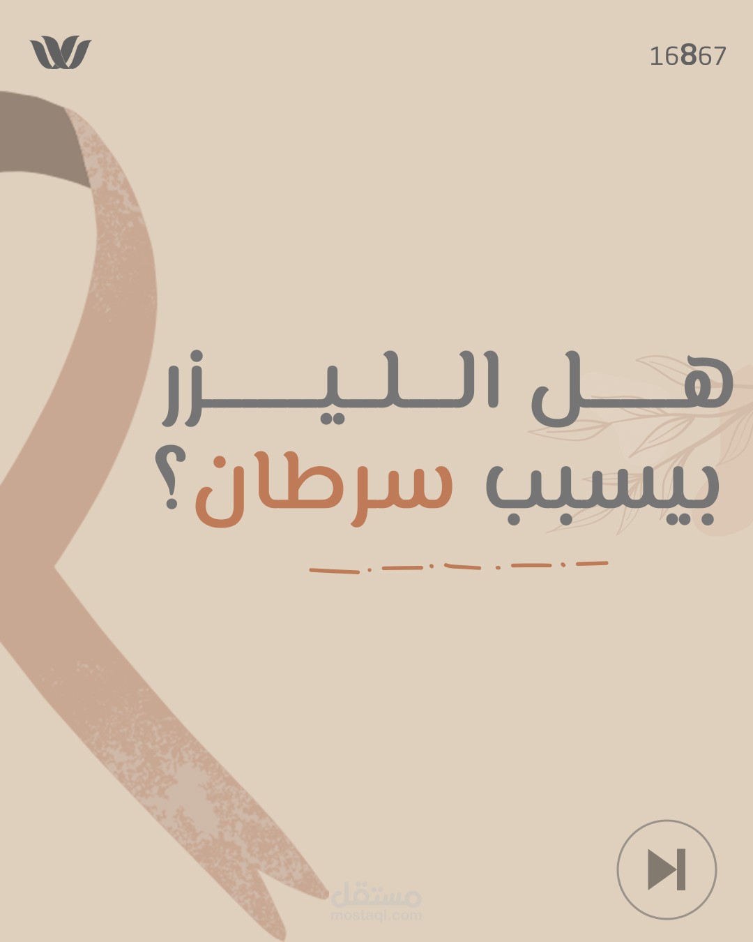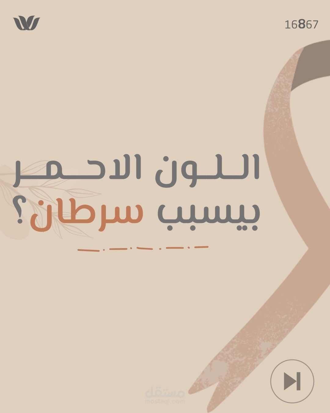 الشريط الوردي البني: رمز عالمي للتوعية بمرض السرطان، تم استخدامه بأسلوب بسيط وملمس ناعم لإضفاء إحساس بالدفء والواقعية.