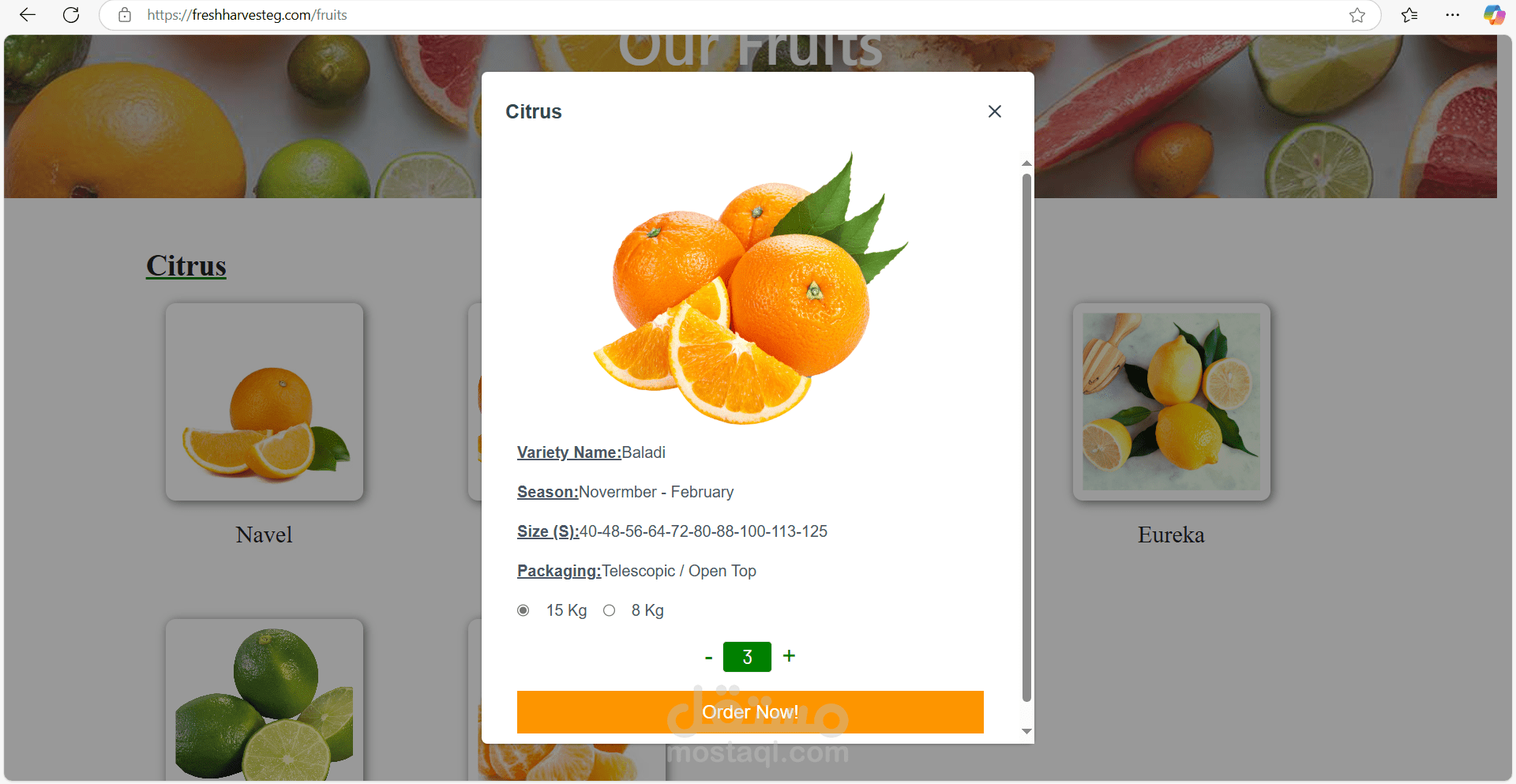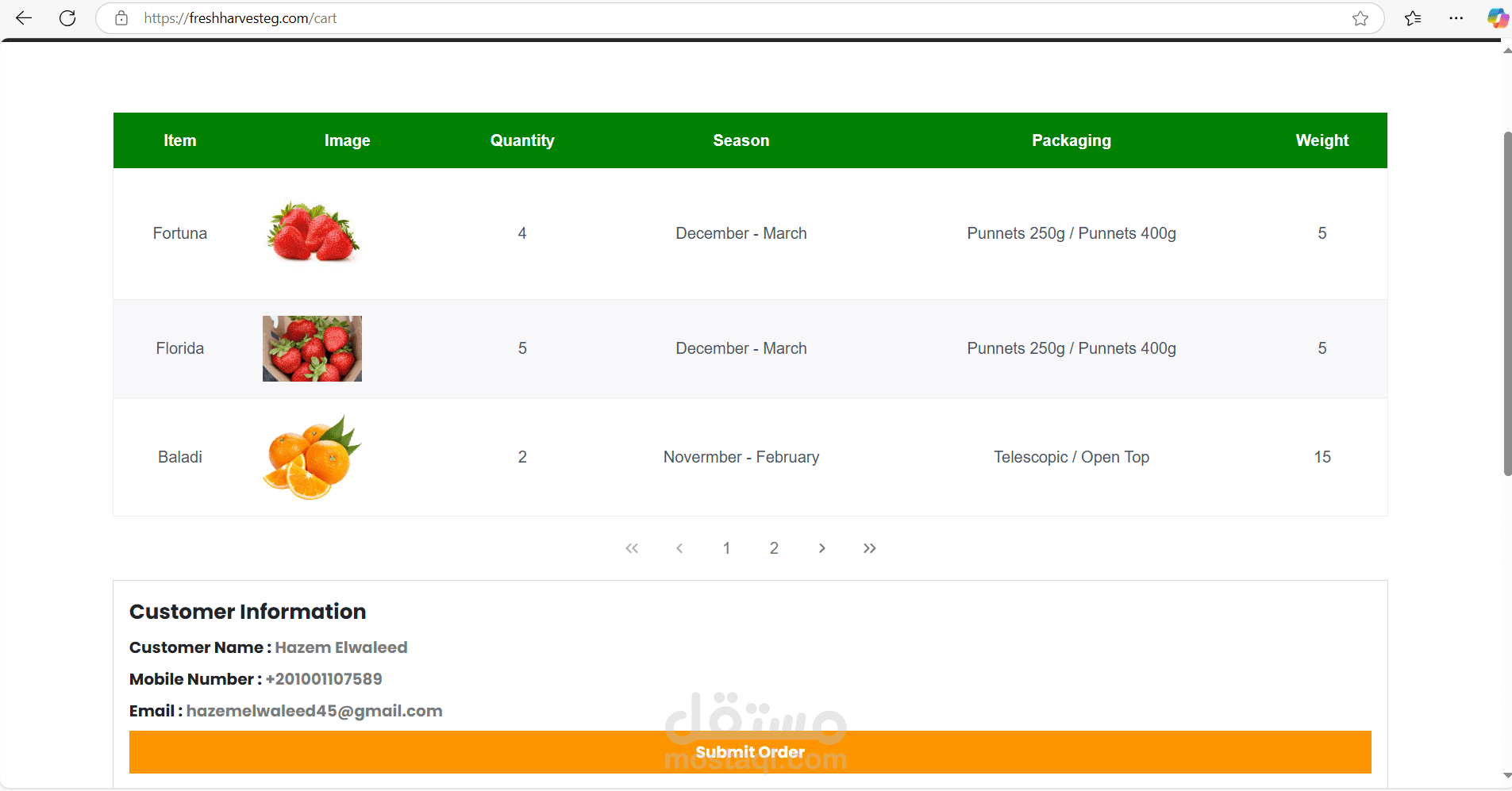 يمكنك من عرض منتجات شركتك الخاصه مع المزيد من المميزات الخاصه . يتم استلام ايميل خاص بالعميل عند الطلب و ايضا للعميل يقوم باستلام ايميل خاص بالطلب و تفاصيله . يمكنك تغيير كلمة السر عن طريق OPT يتم استلامه علي البريد الخاص بك . ايضا يمكنك الاضافه الي سلتك و طلب المنتجات فيما بعد . و اخير يمكنك طلب اضافات جديده للموقع : https://freshharvesteg.co...