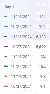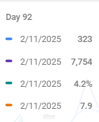 - تحسن مستدام خلال 92 يومًا فقط، حيث ارتفعت عدد النقرات اليومية من 124 إلى 323، وارتفع عدد الظهور اليومي من 6,133 إلى 7,754، كما - زاد معدل النقر (CTR) اليومي من 2.5 بالمئة إلى 4.2 بالمئة، وتحسن متوسط الترتيب اليومي من 9.3 إلى 7.9.