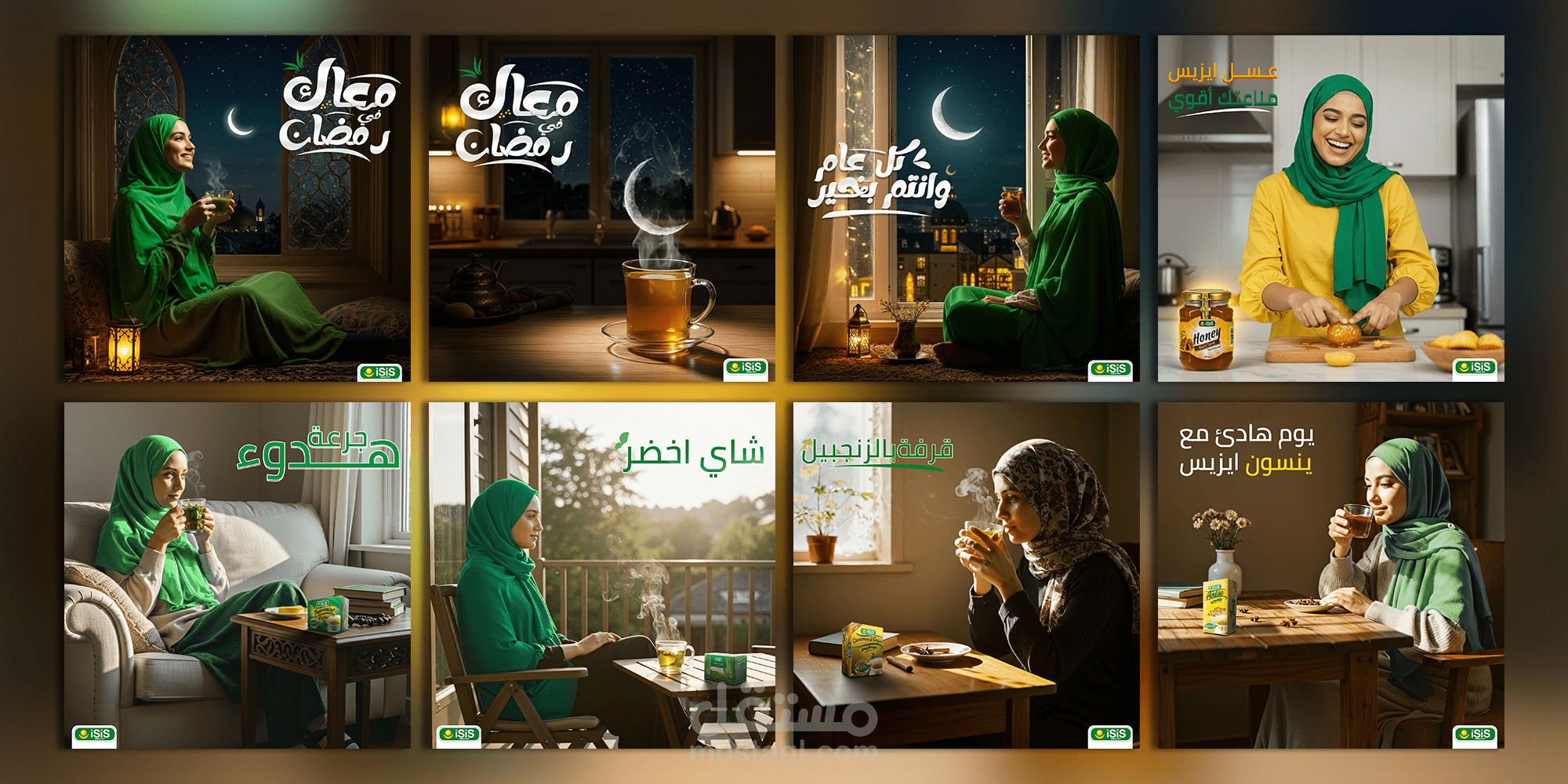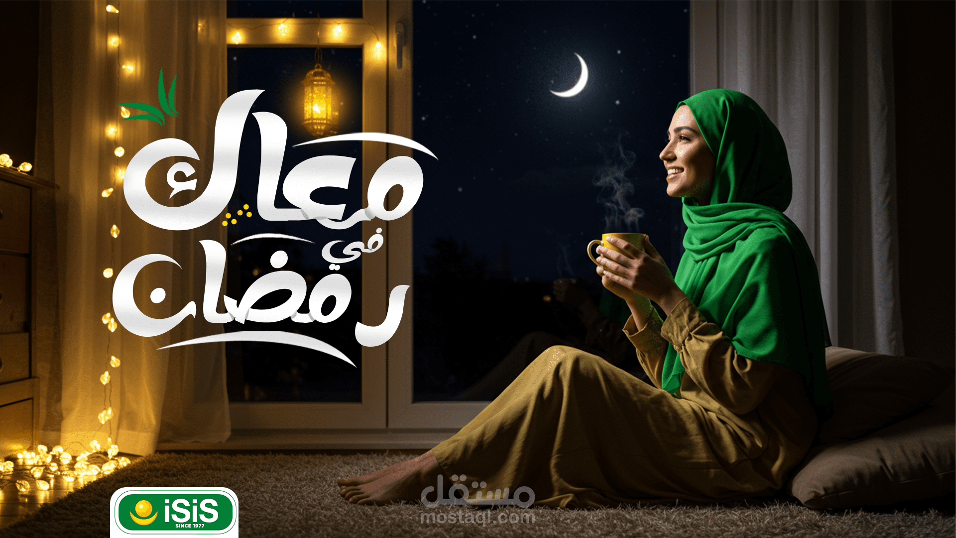 حيث ان التصميم في شهر رمضان يتميز بالهدوء وتوصيل الفكرة بشكل سهل وجعل التصميم هادئ ومريح للعين