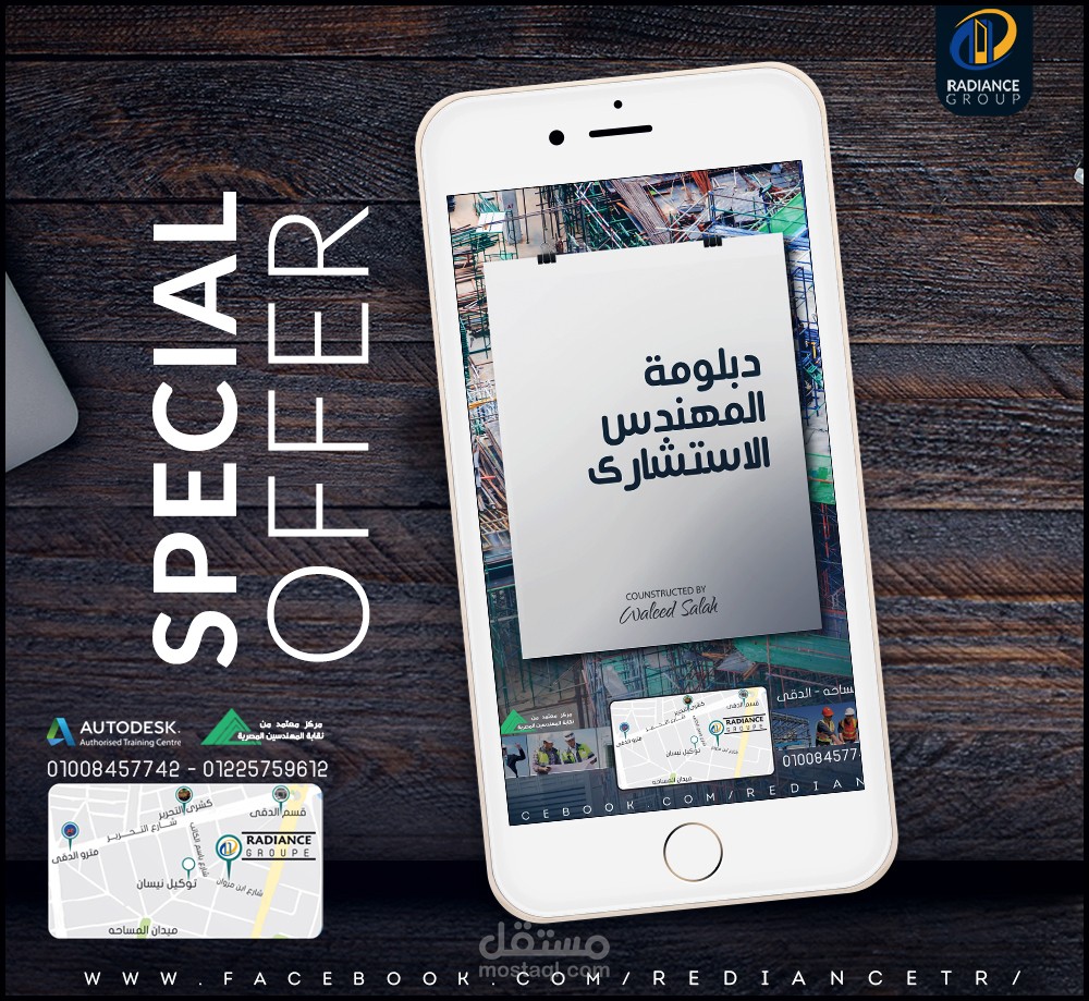 اعمال وتصايميم مواقع التواصل الإجتماعى لشركة ردينس للكورسات