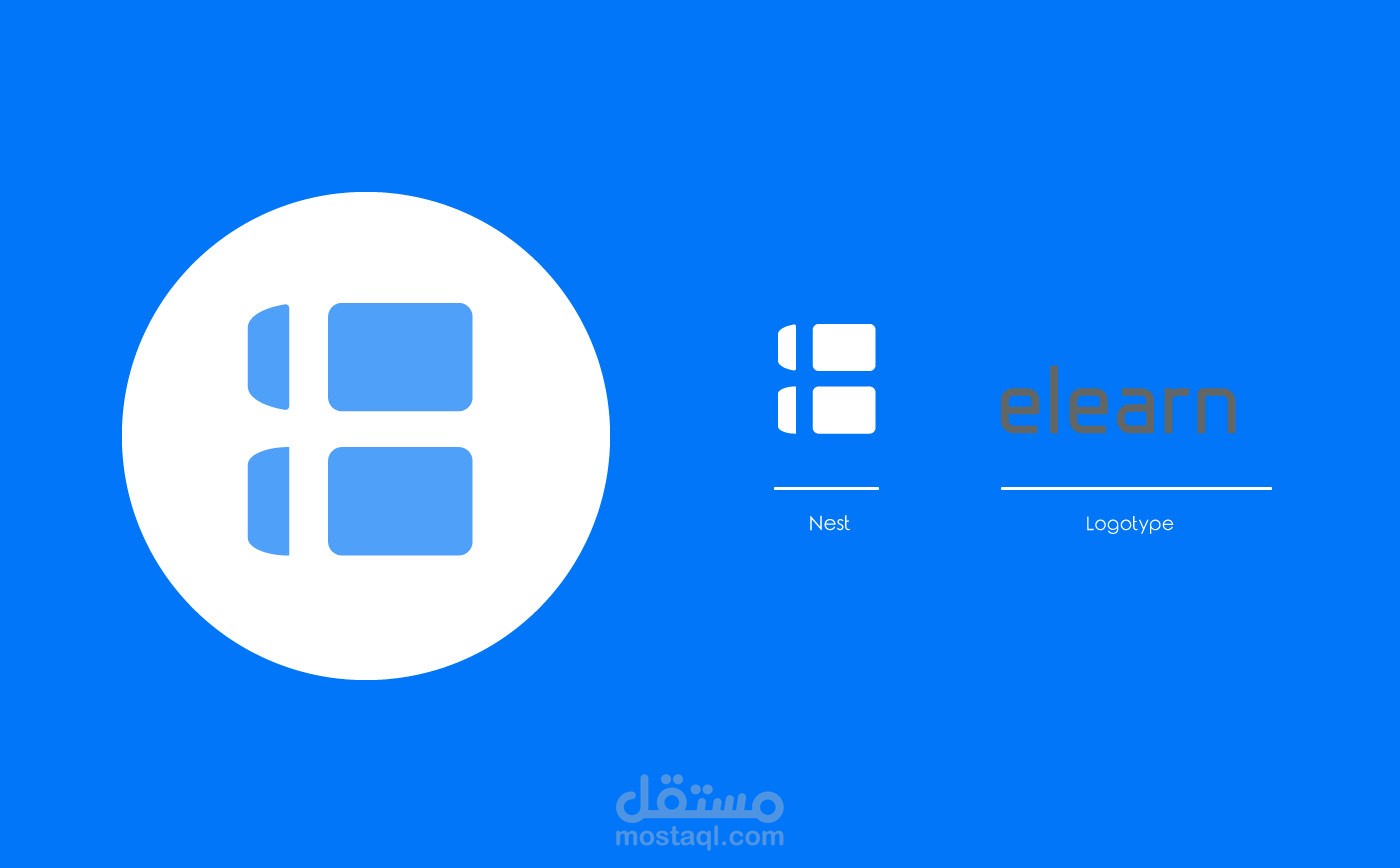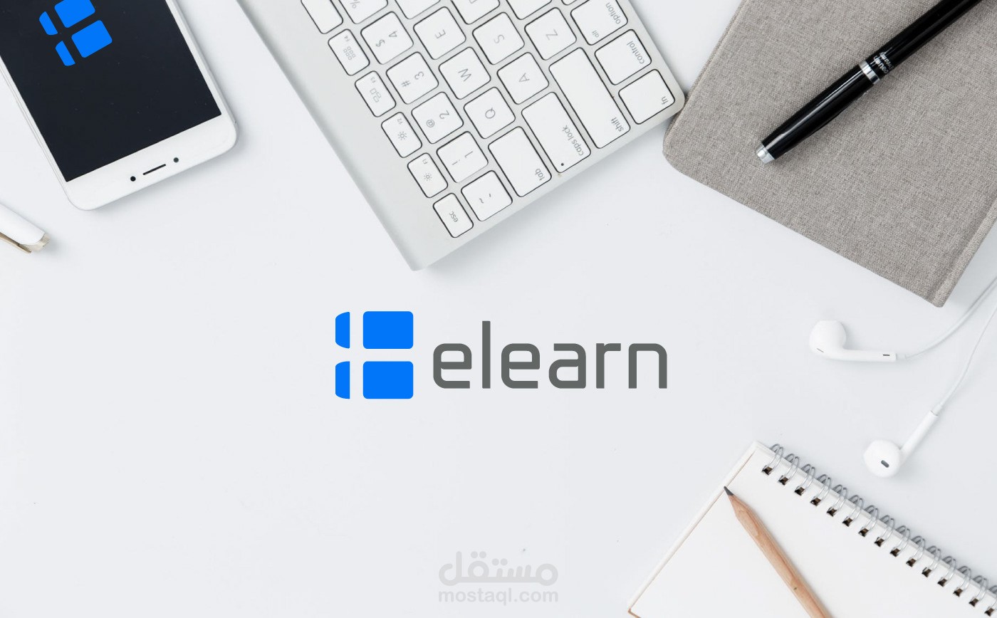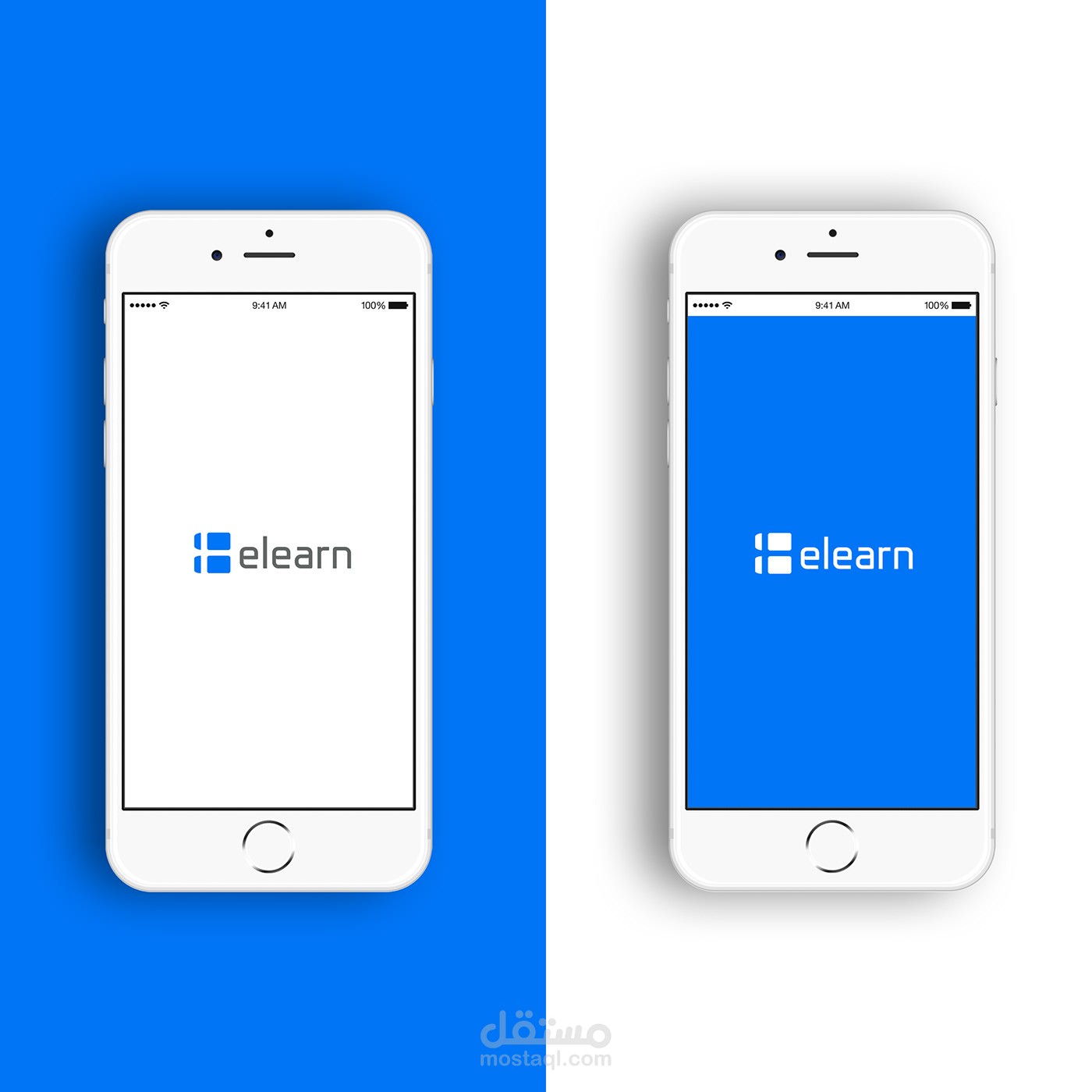شعار تطبيق elearn المتخصص في تقديم كورسات تم اختصار ايقونة الشعار من ايقونة الكتاب وحرف(E).