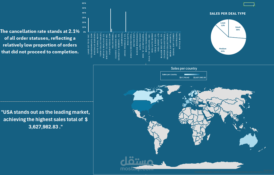 مساعدة شركة/عميل على فهم توزيع المبيعات الجغرافي بدقة، وتحديد المناطق ذات الأداء العالي والمنخفض، ووضع خطة عمل لتحسين الكفاءة التشغيلية.