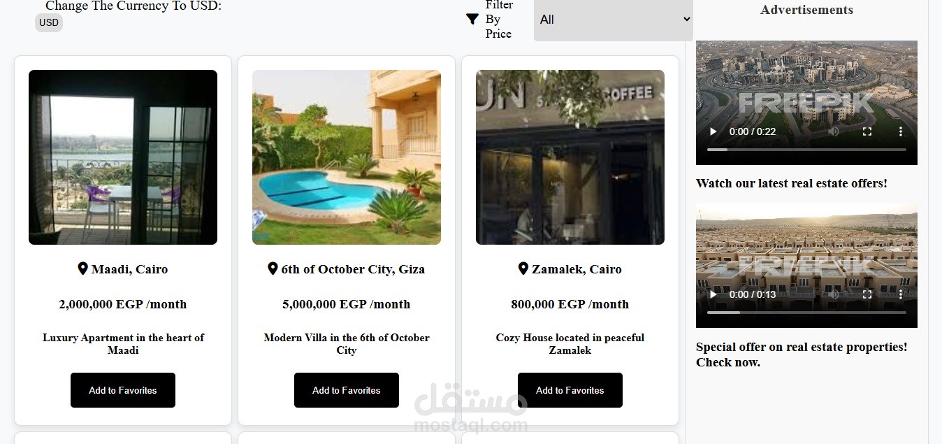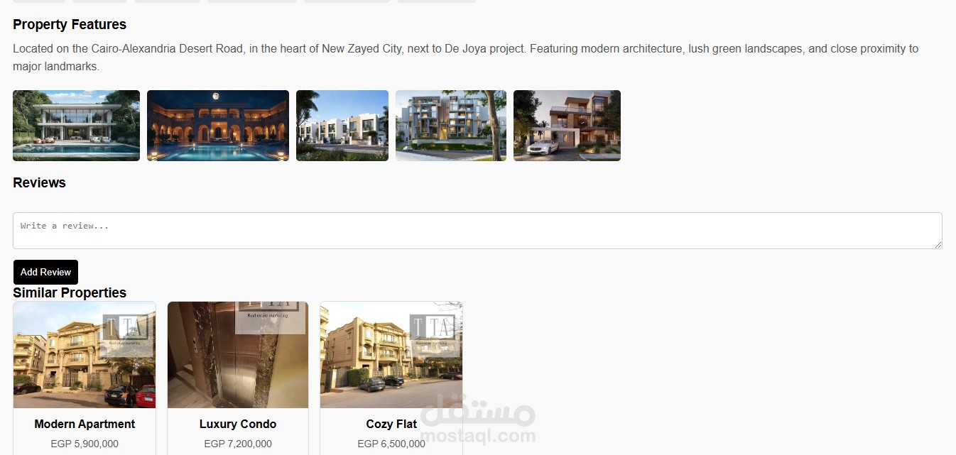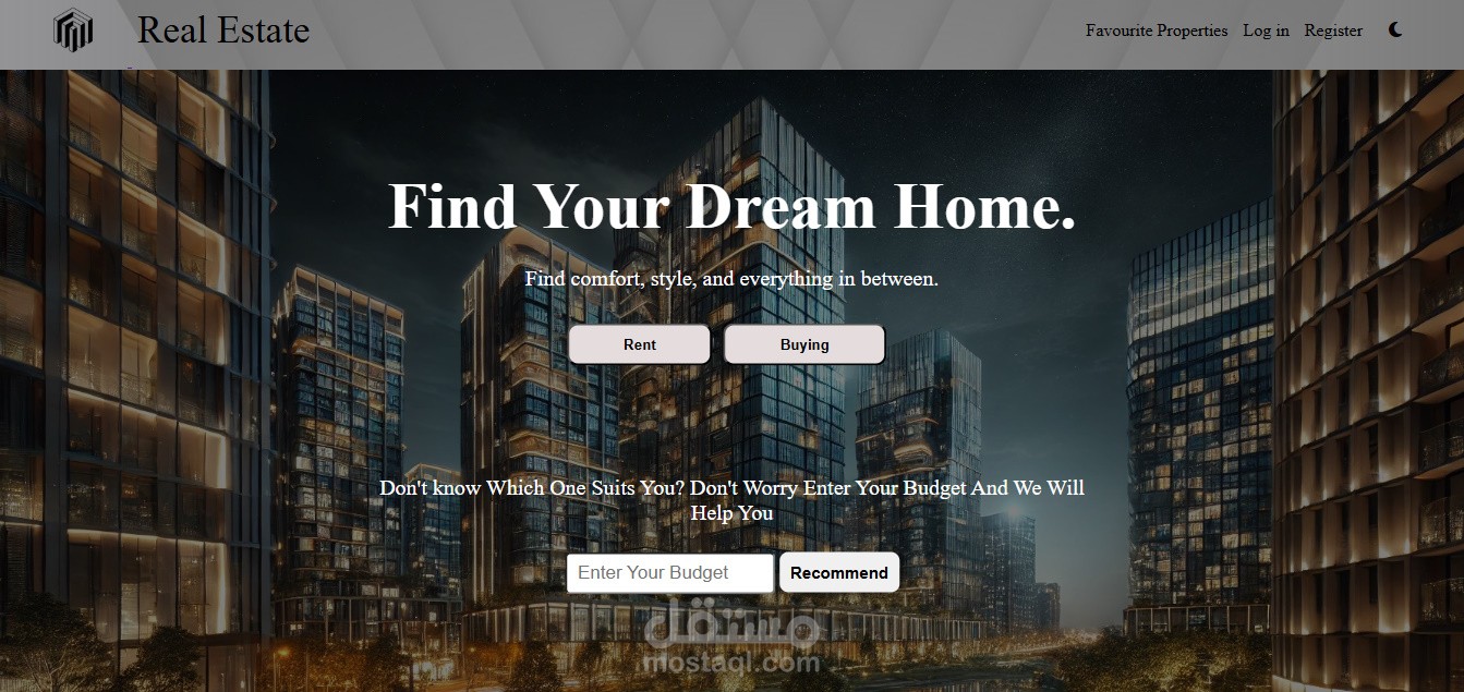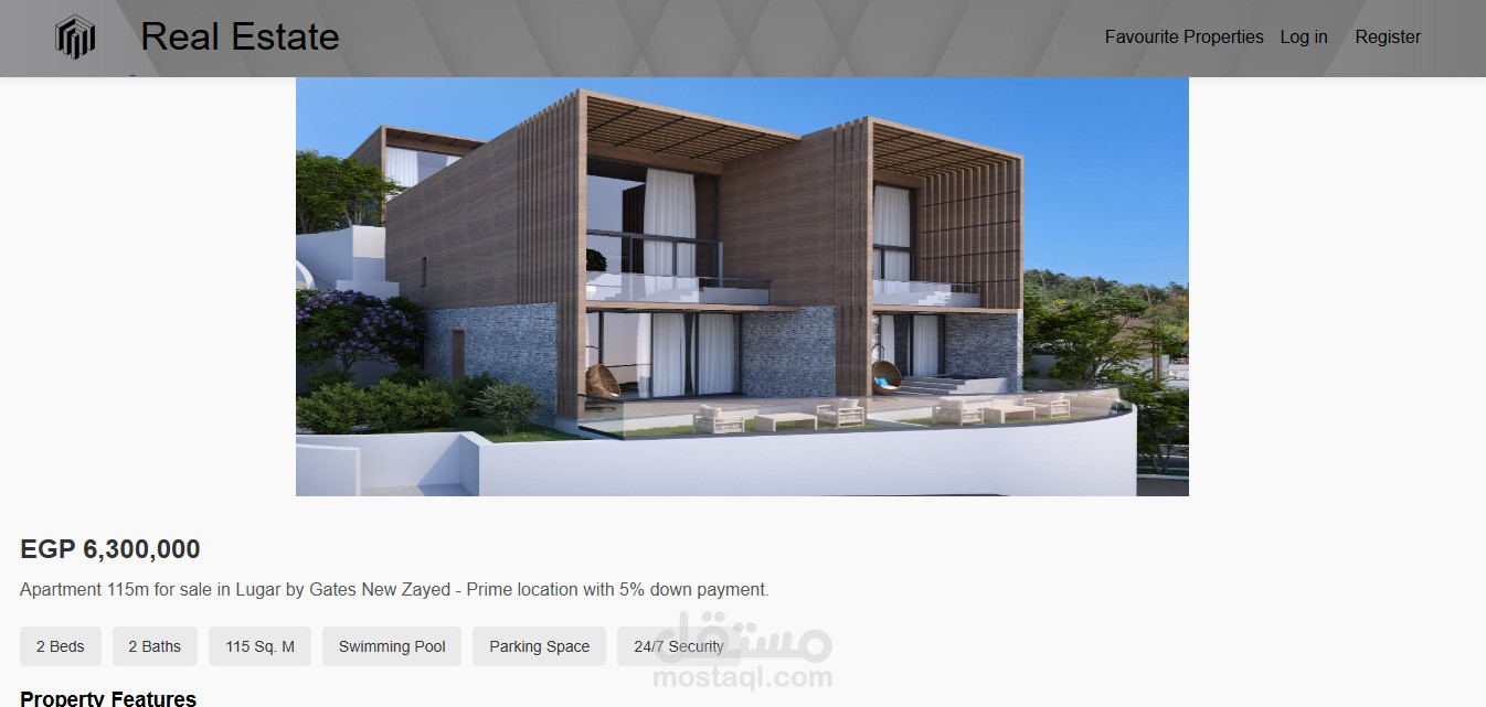 Real Estate هى منصة عقارية ذكية مبنية باستخدام جافا سكريبت.
