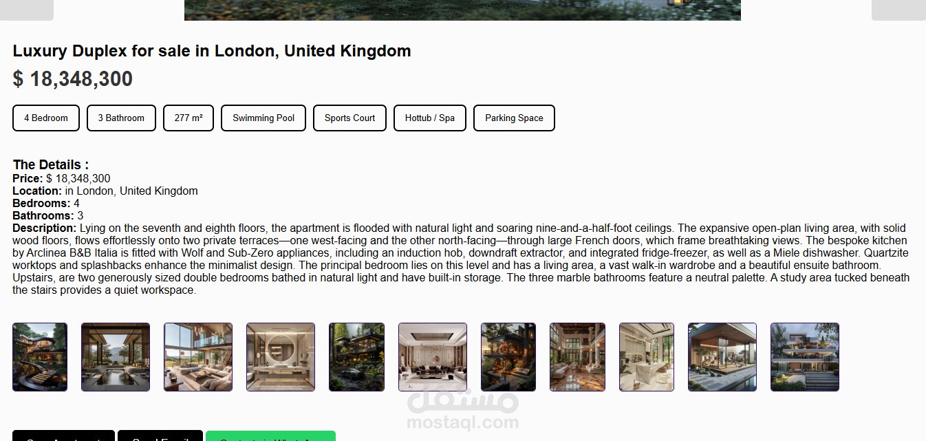 يتميز بتصميم أنيق ومتجاوب يعرض العقارات بطريقة جذابة،
