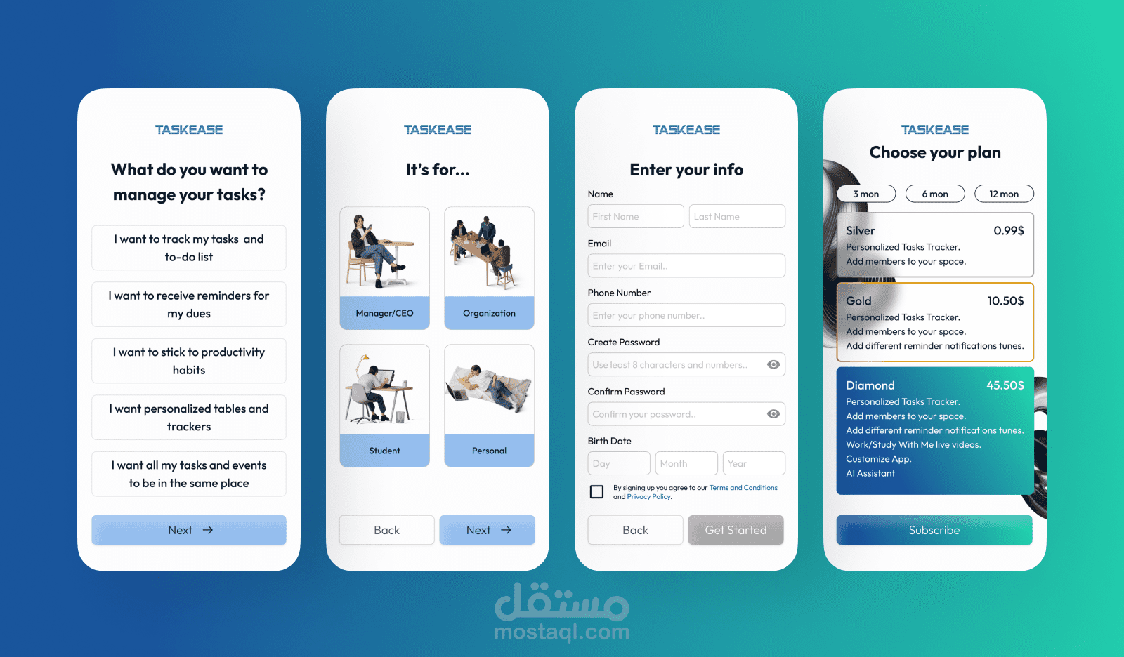 تصميم تطبيق لإدارة أعمالك TaskEase