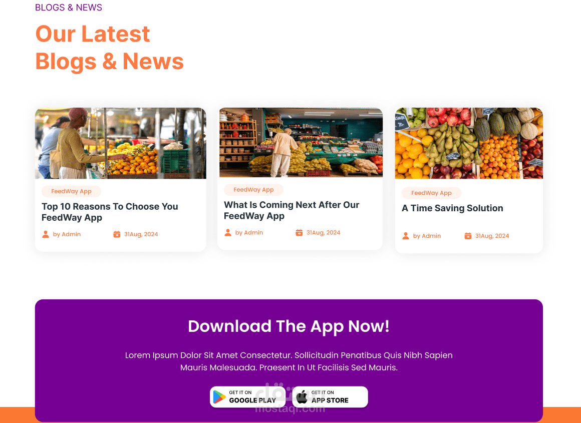 يقدم قسم "Key Features Of Feedway App" شرحًا واضحًا للميزات الرئيسية للتطبيق، مثل التتبع والتحديثات على الطلبات، مما يسهل على المستخدمين فهم كيفية استخدام التطبيق. قسم "Here Is How FeedWay App Works" يقدم شرحًا مبسطًا لعملية استخدام التطبيق، مما يجعله سهل الاستخدام حتى للمبتدئين. أخيرًا، قسم "Our Latest Blogs & News" يوفر محتوى حديثًا ومفيدًا للمستخدمين، مما يعزز التفاعل والثقة في العلامة التجارية.