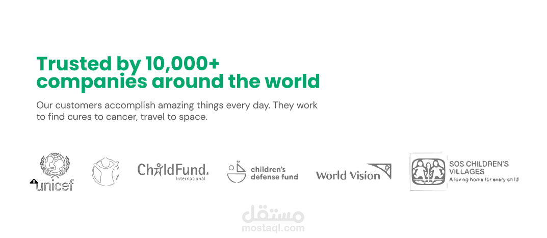 يتم تقسيم المحتوى إلى أقسام محددة، مثل "Who we are" و"How to respond to missing situations"، مع استخدام أرقام وإحصائيات لدعم المصداقية، مثل "Trusted by 10,000+ companies around the world". يتم أيضًا عرض شعارات الشركاء والجهات الداعمة، مما يعزز الثقة في الخدمة.