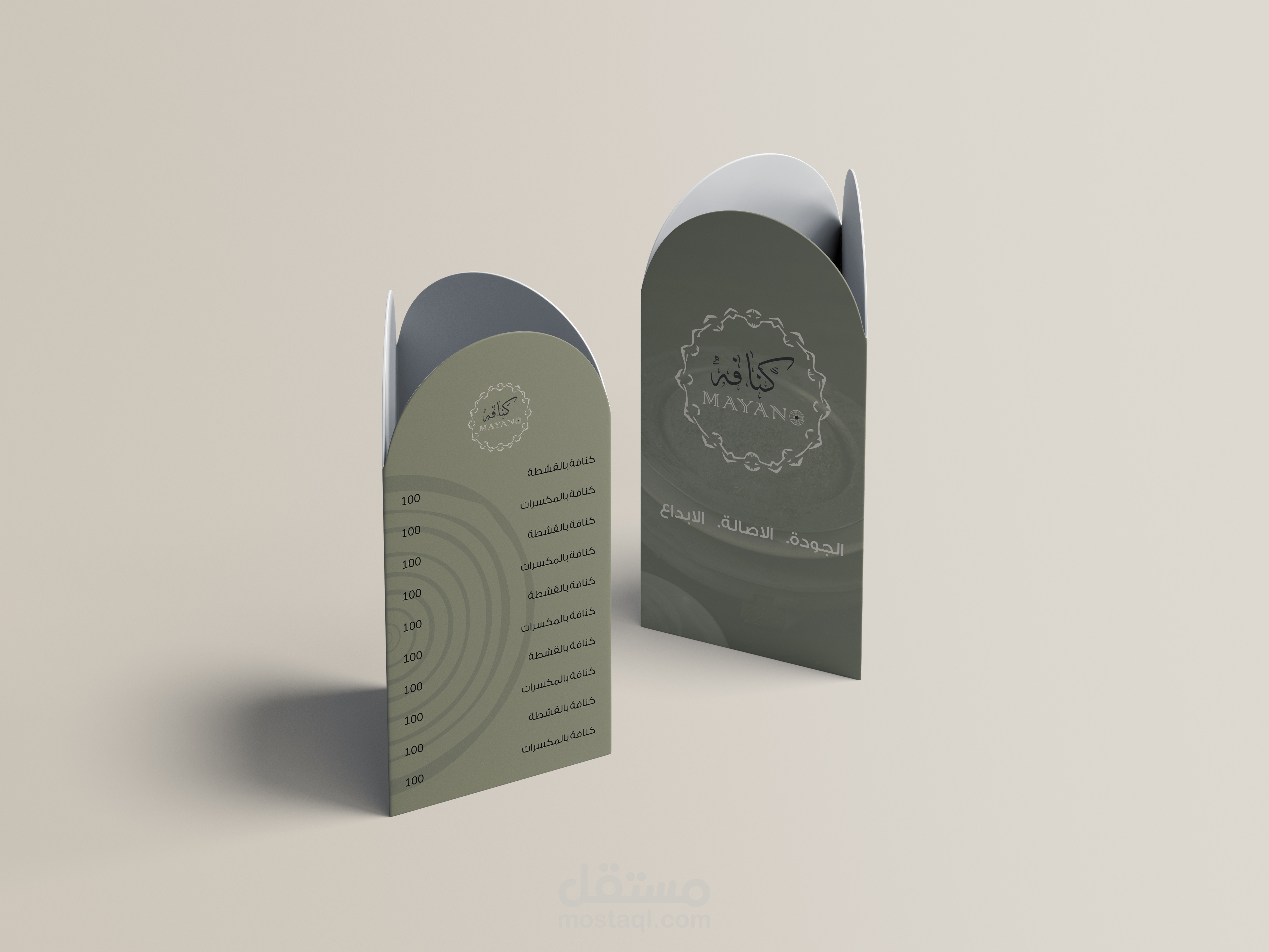 3. تطوير عناصر الهوية البصرية: بناءً على الشعار الذي تم تصميمه، قمنا بتطوير عناصر الهوية البصرية التي تتكامل مع الطابع العام للمحل وتجعل التجربة البصرية متناسقة وممتعة. هذه العناصر تضمنت: